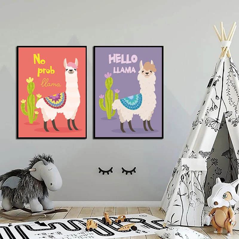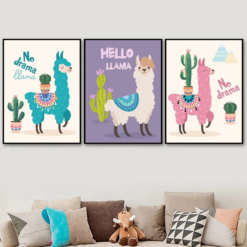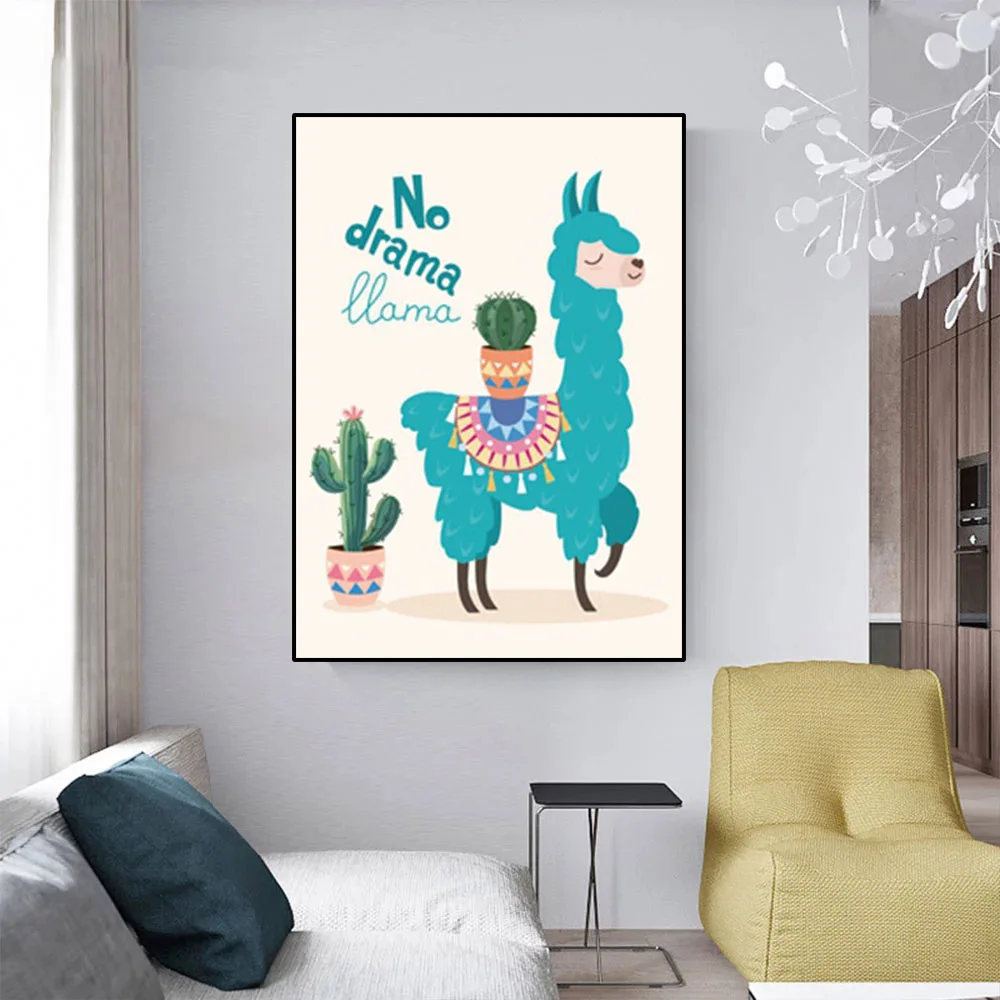 Декор для детской комнаты, принты и плакаты, мультяшная лама С КАКТ...