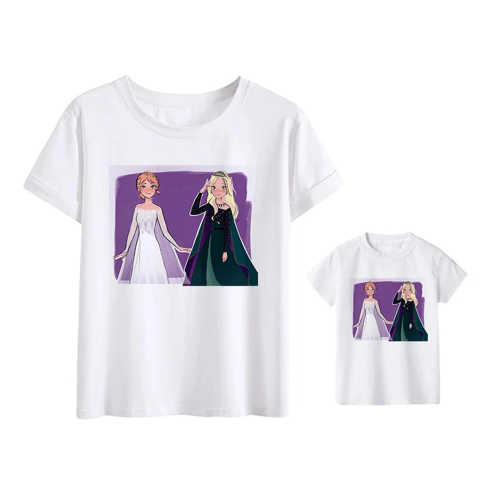 Семейные одинаковые наряды, футболка для мамы, ребенка, девочки, футболка для сестры, королевы, Эльзы, принцессы Анны, топы с принтом в стиле Харадзюку, Прямая поставка