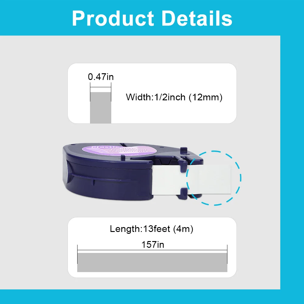 √ Размер: 12 миллиметров на 4 метра (1/2 дюйма на 13 футов). Поставляется с 6 упаковками 65 футов (20 м) прочной, черной на прозрачной пластиковой ленте для удовлетворения различных повседневных потребностей в маркировке.