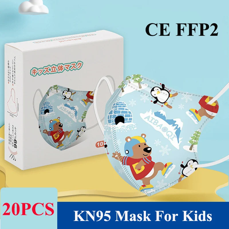 20 штук детская KN95 уход за кожей лица маска CE FFP2 рисунком, для детей возрастом от 4 Слои пыли Защитная Mascarillas Респиратор маска шапки дышащие сандалии с открытым носком и маска для лицаОписание: