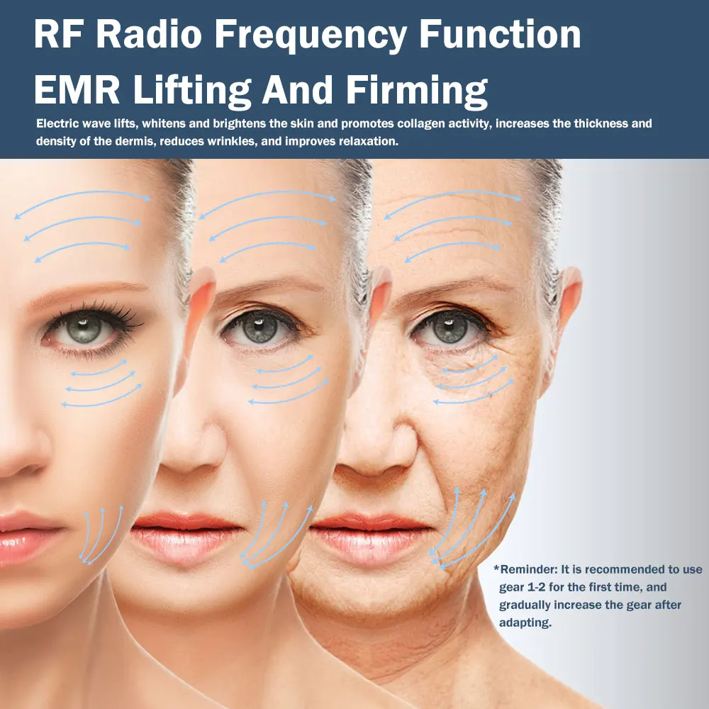 • ВЧ-ток: высокочастотное электрическое сопротивление нагреву, эффективно улучшает Обвисание кожи, старение морщин, способствует лимфатическому и кровообращение и другой уход.