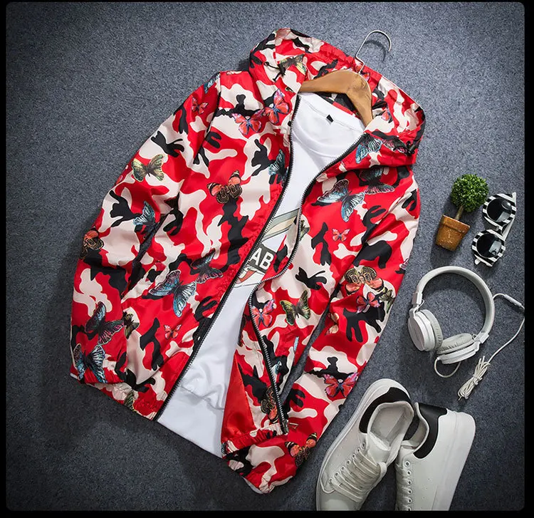 Мужская куртка с капюшоном, новая осенняя ветровка с принтом бабочк...