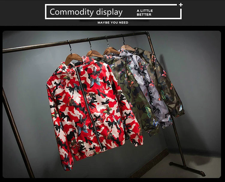Женская тонкая ветровка с капюшоном, камуфляжная ветровка с бабочка...