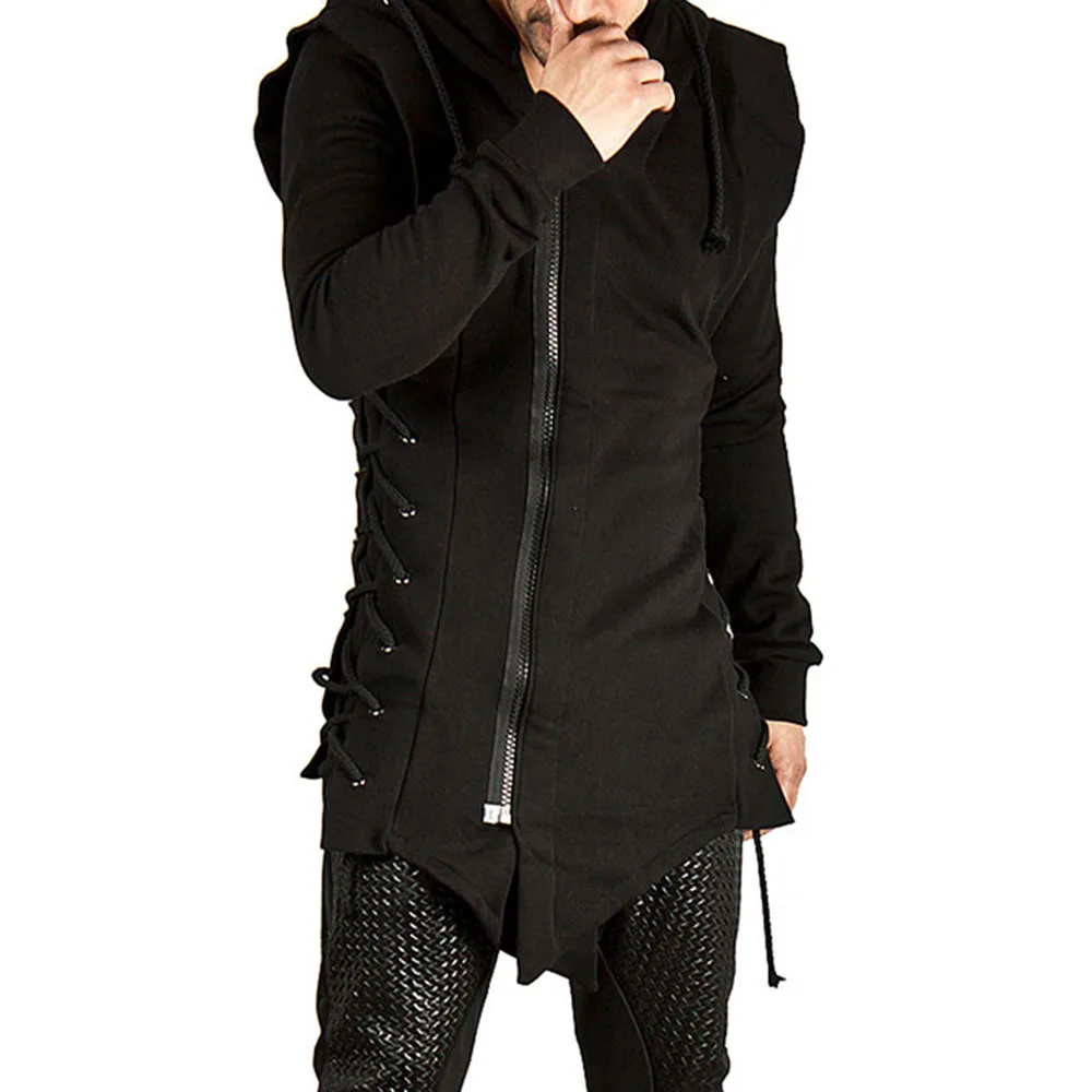Свитшот мужской в готическом стиле, уличный худи с косыми завязками, с капюшоном, Модный пуловер в стиле панк, крутая Одежда для мальчиков