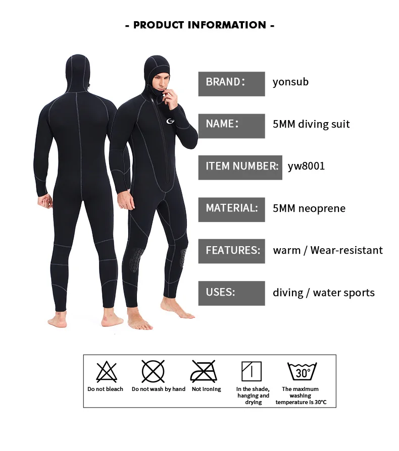 Мужской неопреновый гидрокостюм YONSUB, с длинным рукавом и молнией спереди, 5 мм, для подводного плавания, охоты, серфинга