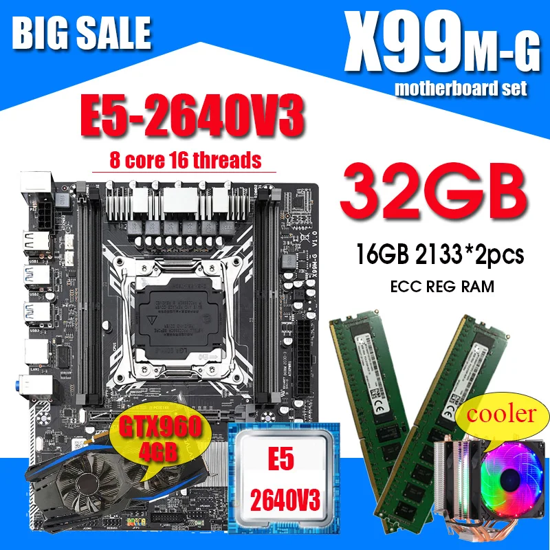 Материнская плата X99 с Intel XEON E5 2640 V3 с 2*16 Гб DDR4 RECC память GTX960 4 Гб и охлаждающий комбинированный комплект SATA 3,0 USB 3,0