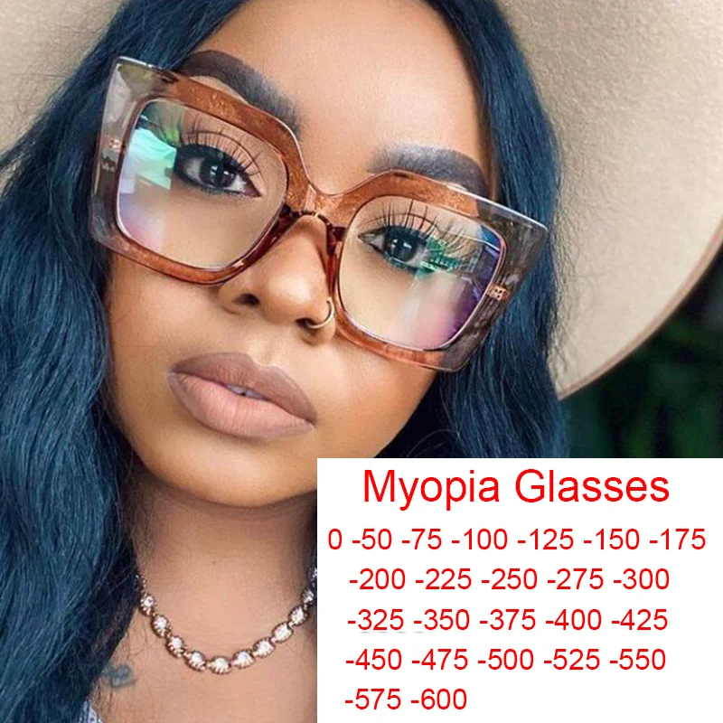 Очки женские в винтажном стиле, Квадратные прозрачные с блокировкой синего и коричневого цветов, при близорукости, по рецепту,-2 -3 -4 -6