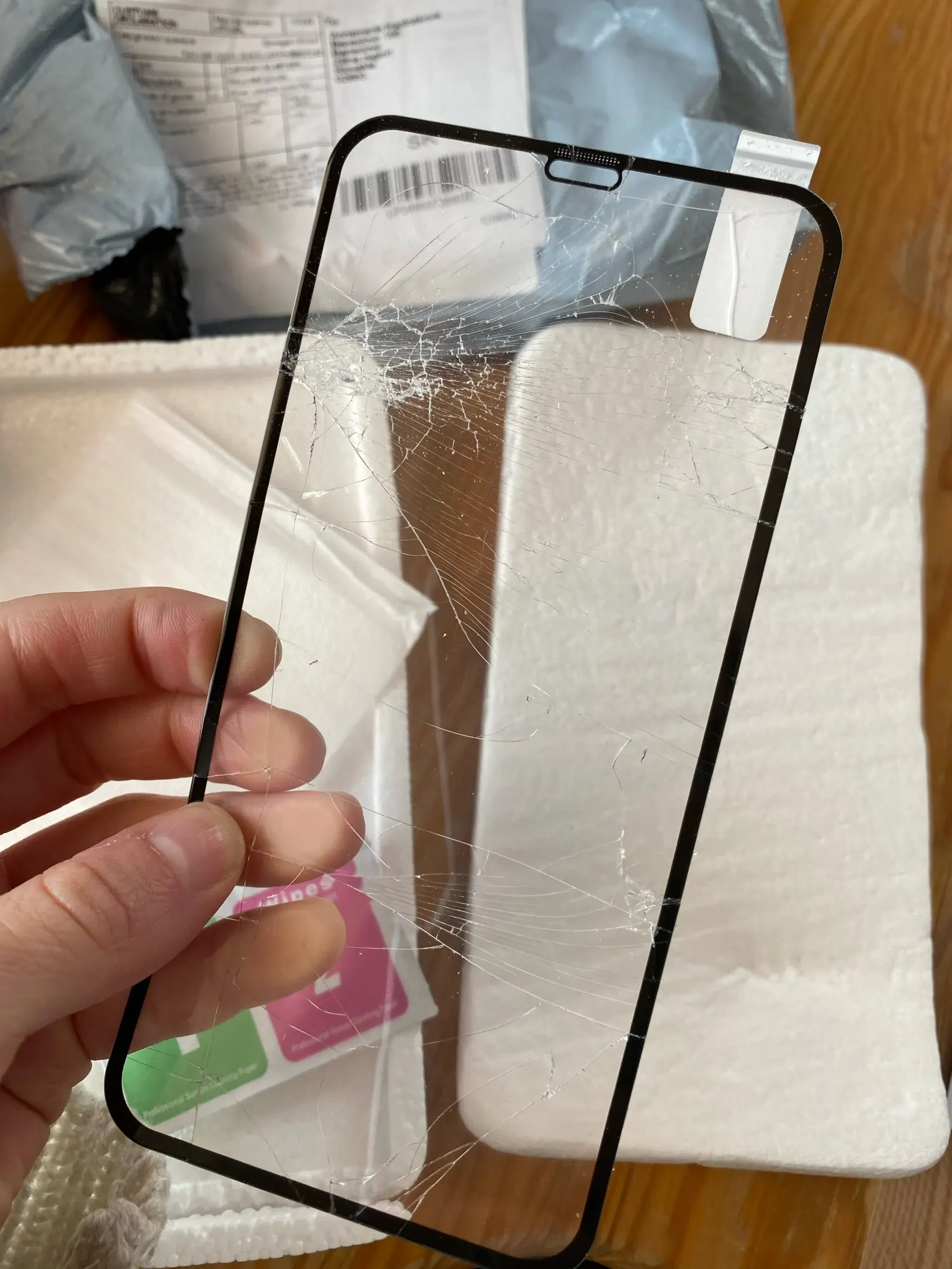 Стекло на IPhone 6 Plus. При наклейке не прилегает к экрану полностью. Пузыри воздуха по периметру экрана, со всех сторон. Убрать не получилось, как-будто высох клей. Первый раз вижу такое с стёклами.