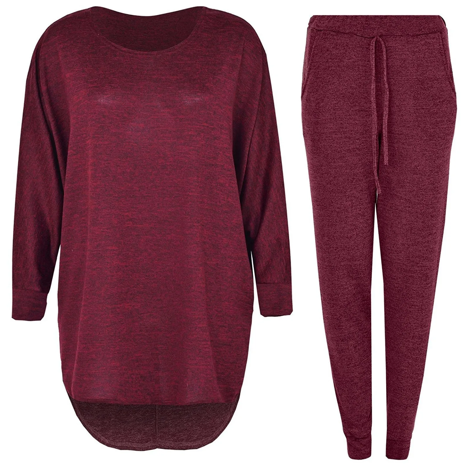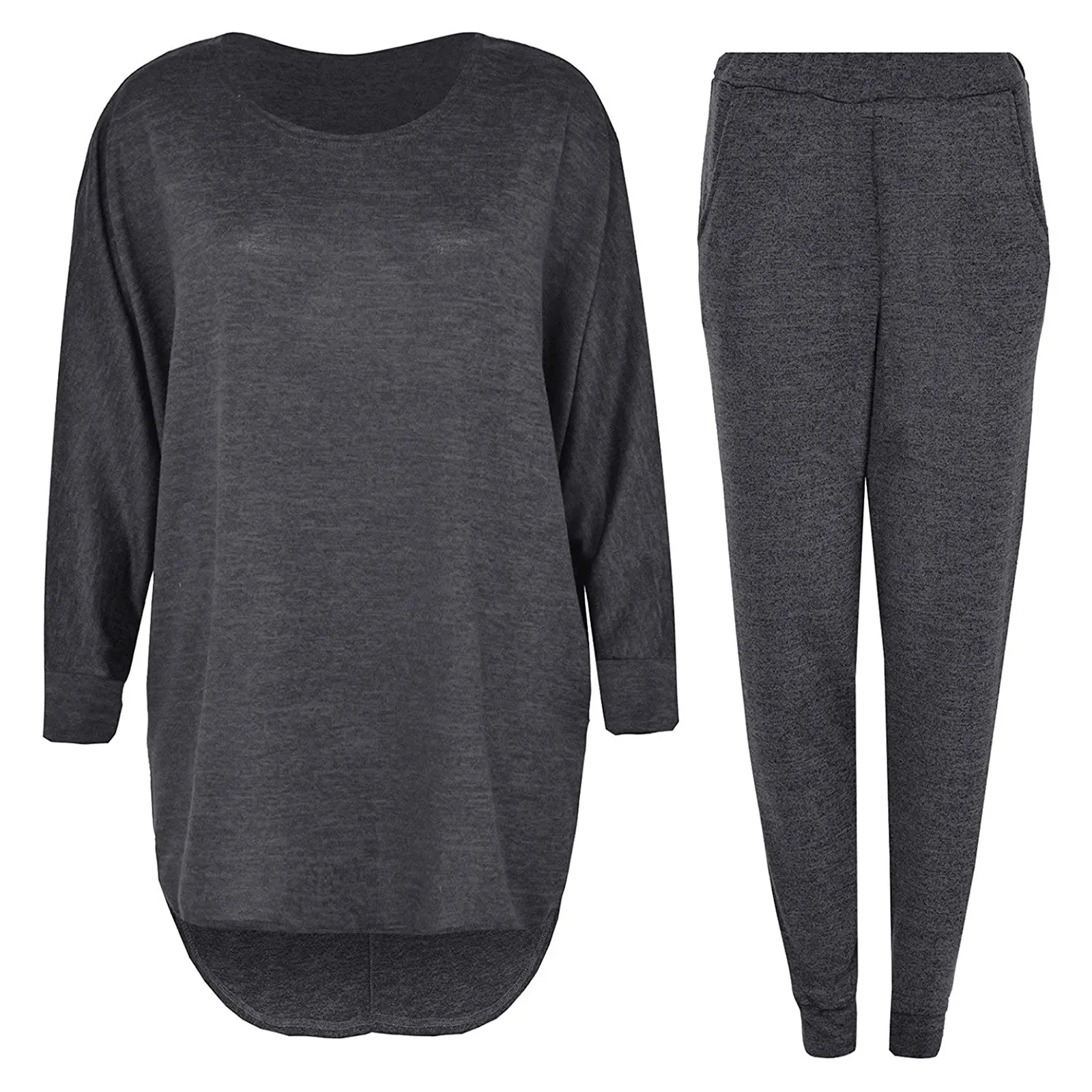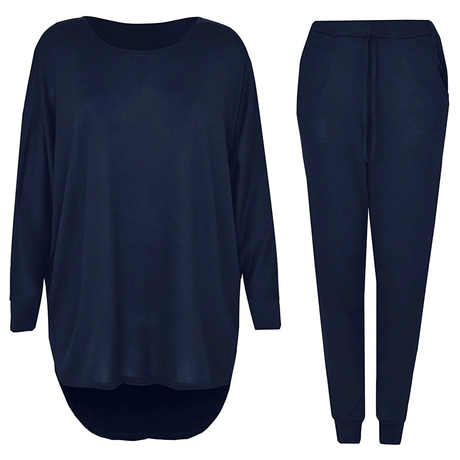 Женская спортивная одежда, повседневный спортивный костюм, Однотонная рубашка с длинным рукавом и круглым вырезом, блузка и брюки с карманами, костюм, женский костюм @ 40