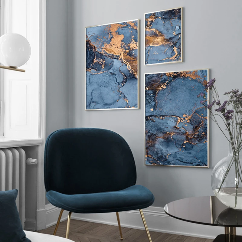 Мраморный пейзаж в форме океана, Постер и печать в скандинавском ст...