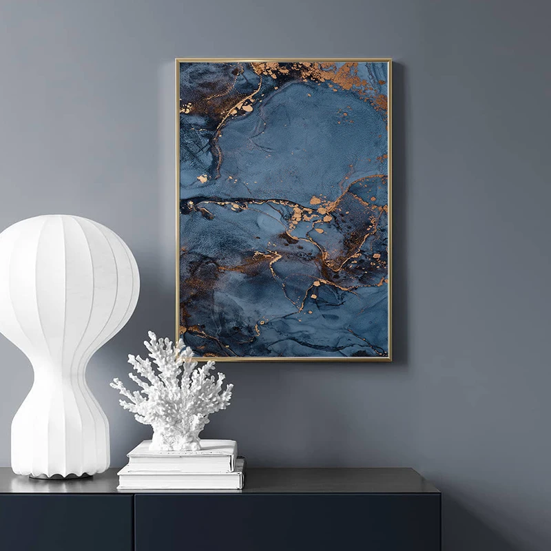 Роскошный абстрактный постер с мраморными трещинами и синими чернил...