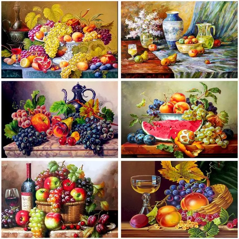 RUOPOTY алмазная живопись фрукты цветок вино вышивка крестиком 5D DIY мозаика вышивка полная квадратная стразы аксессуары для украшения дома