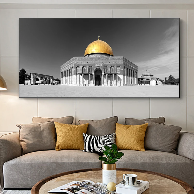 Современная черная белая Исламская купольная Золотая скала Аллах Картина на холсте плакаты принты Настенная картина для гостиной Декор Куадрос
