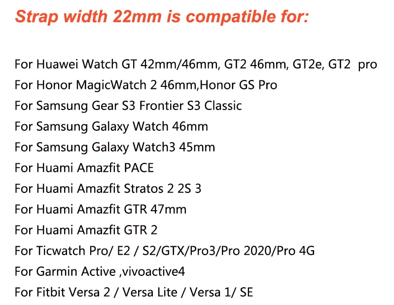 Applicationfor Huami Garmin Samsung Huawei Ticwatch 22mm 20mm
