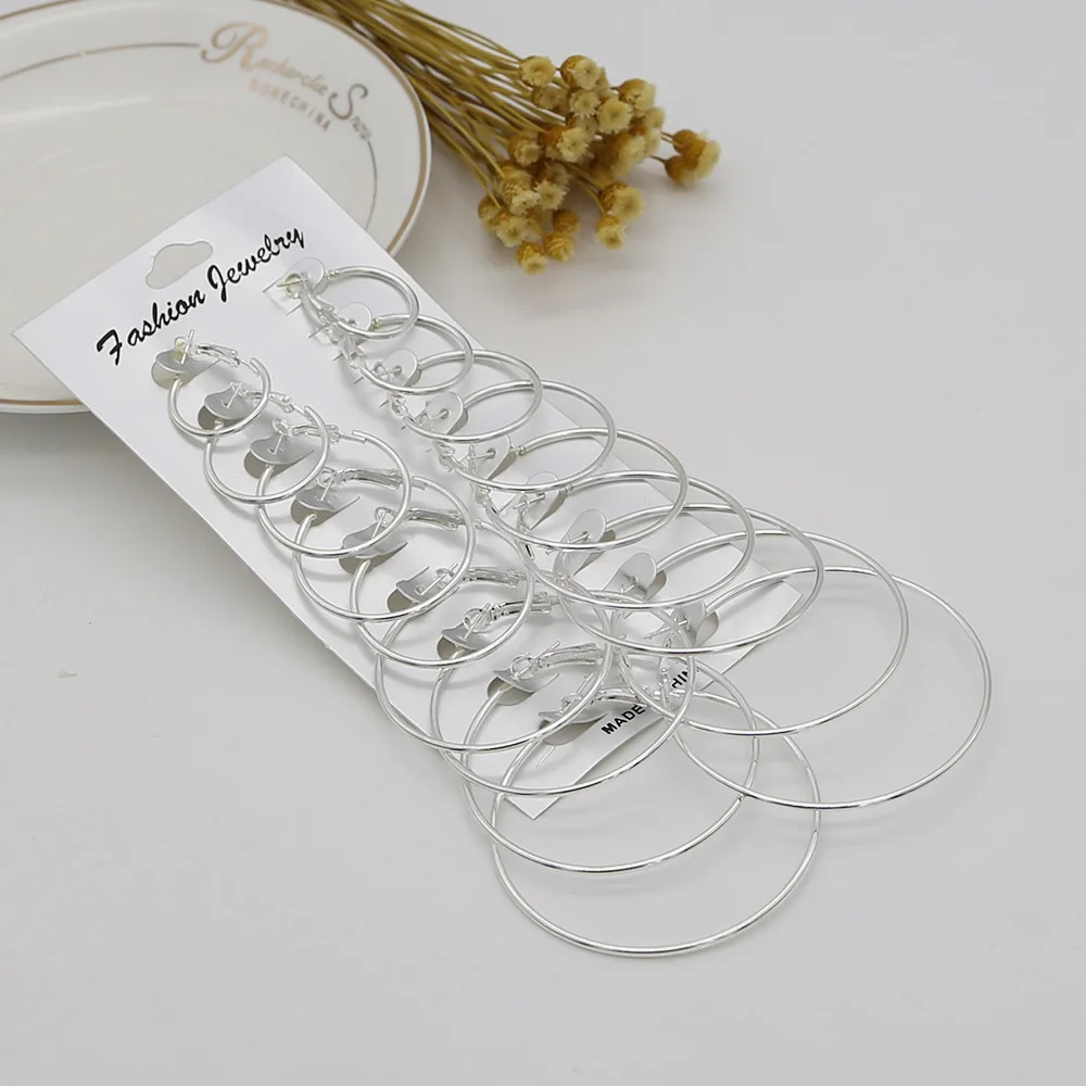 Комплект серег-колец в стиле панк для женщин и девушек, большие круглые серьги в стиле стимпанк, ювелирные украшения для ушей, клипсы, серьги в стиле панк, 6 пар12 пар