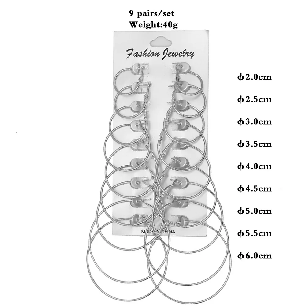 Набор больших круглых серег для женщин, простые серьги-кольца разны...