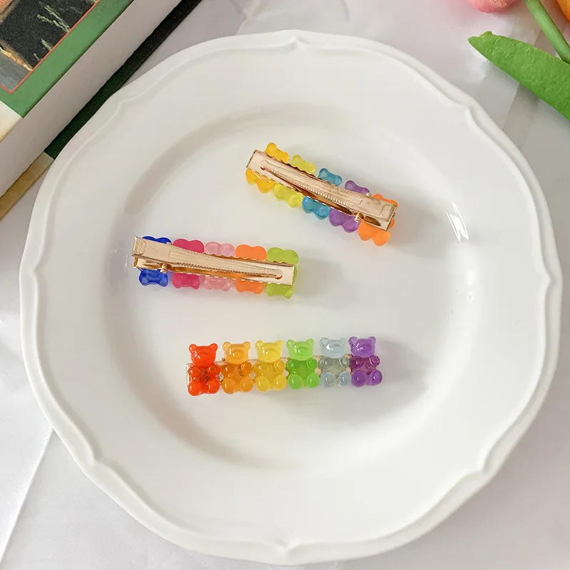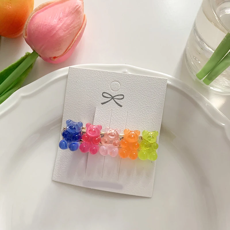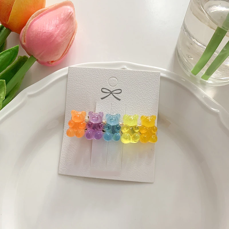 Харадзюку конфетных цветов Резиновый милый медведь заколка для женщин мультяшный прозрачный медведь заколка модная Милая Медведь украшения для волос Новинка