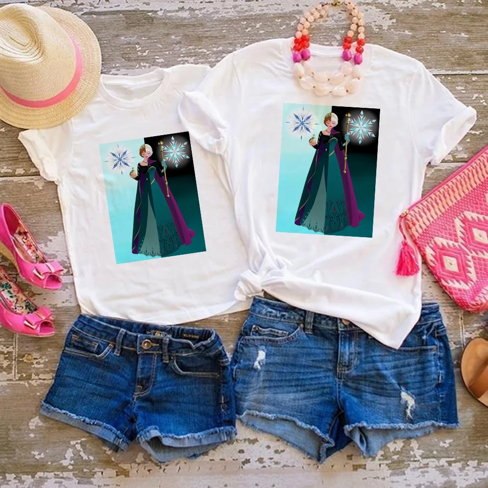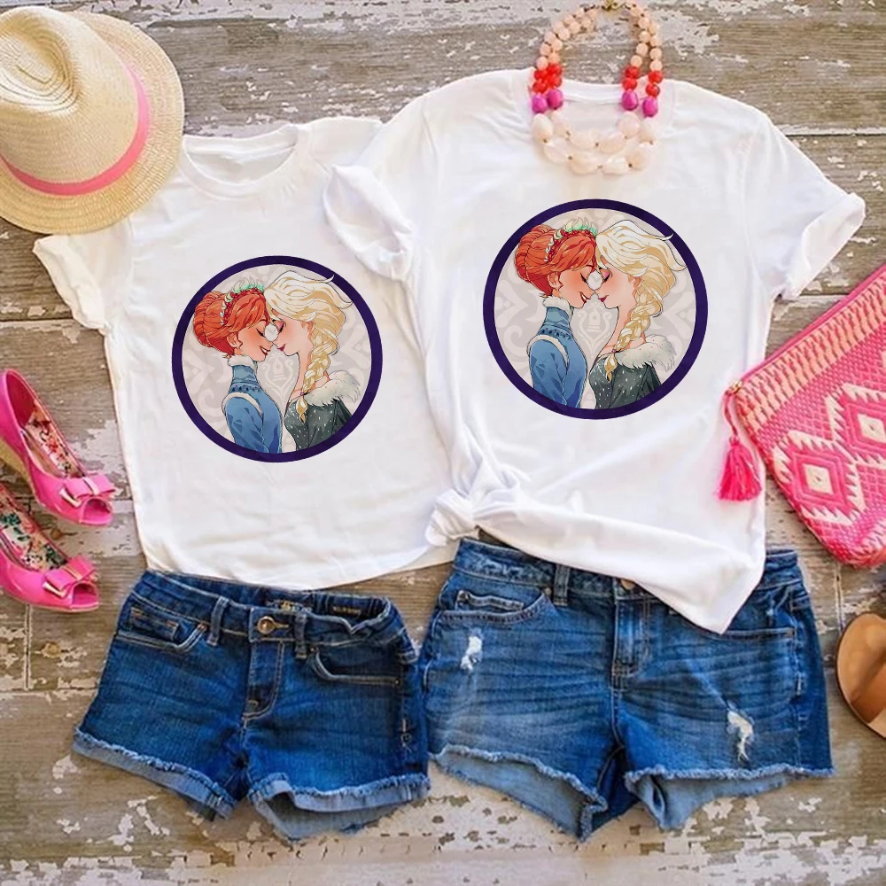Футболка для мамы и дочки Disney, Эльза, Анна, катание на санках, семейная одежда в стиле Харадзюку, Прямая поставка