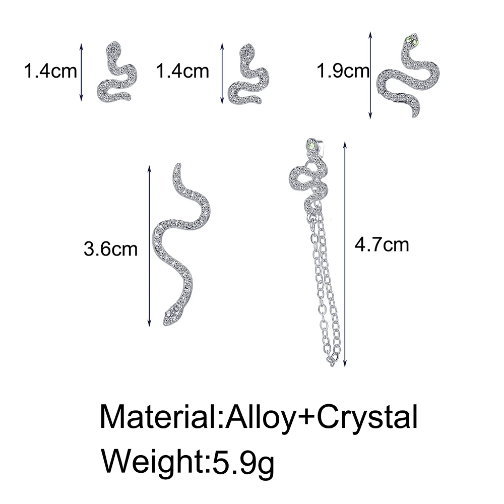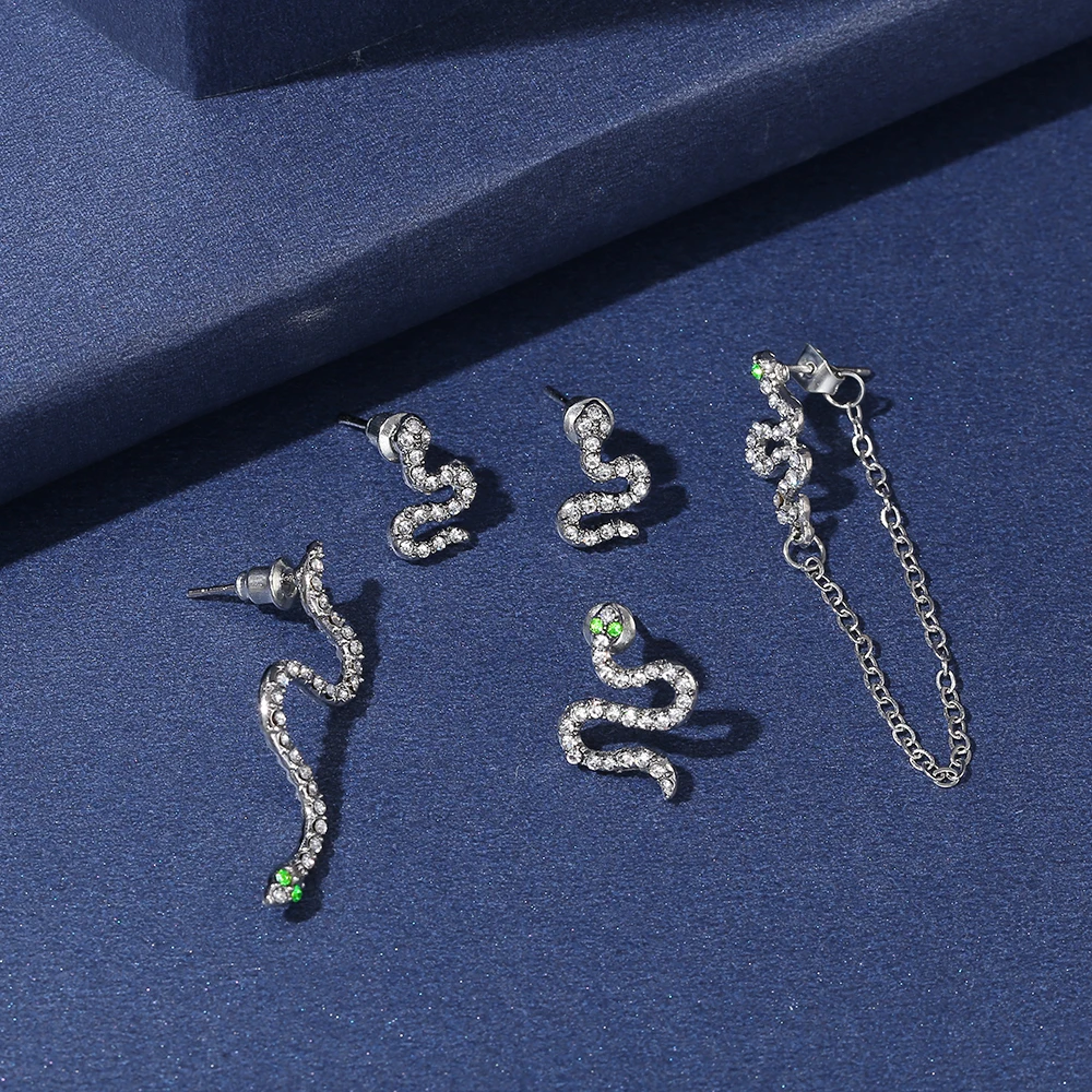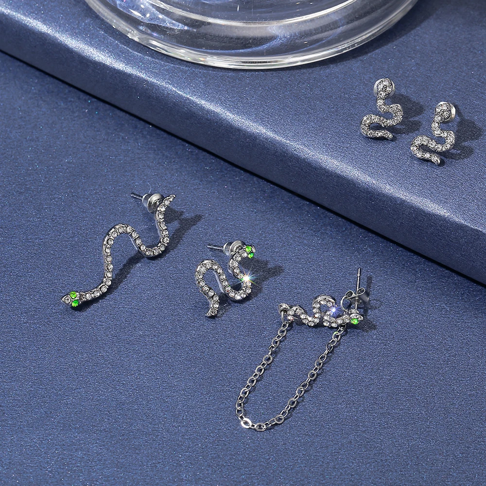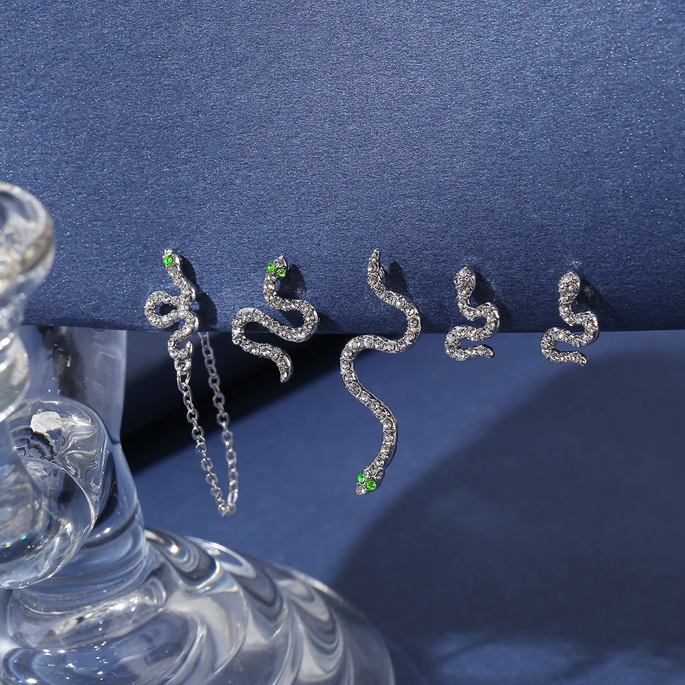 2021 мода Китая по оптовым ценам 5 шт. под змеиную кожу; Змея животных металл серьги-гвоздики Уникальный Панк ювелирные изделия для женщин