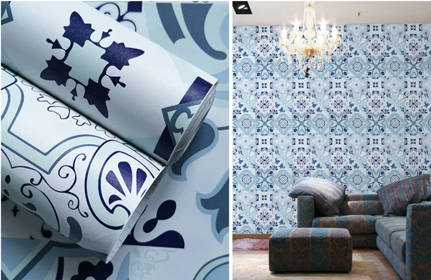 Самоклеящаяся Съемная бумага для кухни, ванной комнаты, синий узор, водонепроницаемая контактная бумага, съемная бумага, настенная бумага, Декор