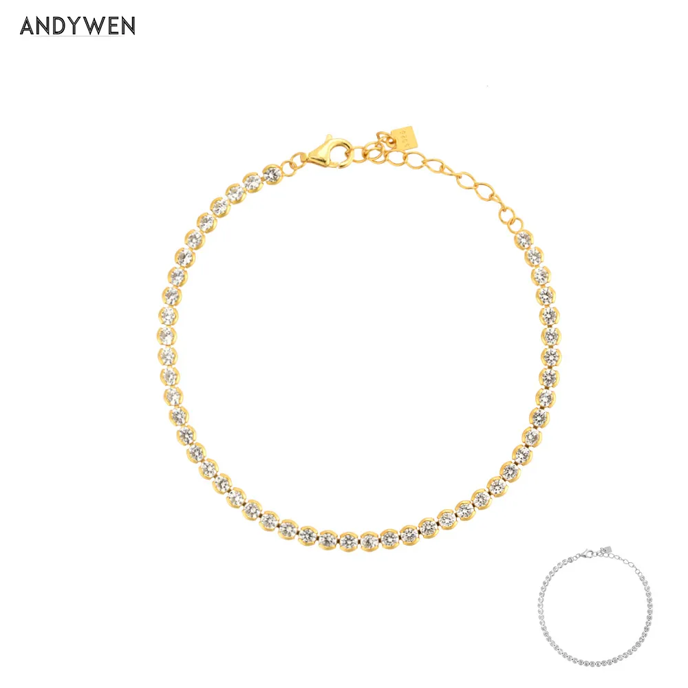 ANDYWEN Новинка 925 Стерлинговое серебро золото циркон Очаровательная цепочка браслет Женщины Кристалл Белый CZ мягкие Роскошные ювелирные изделия 2021 чокер свадьба