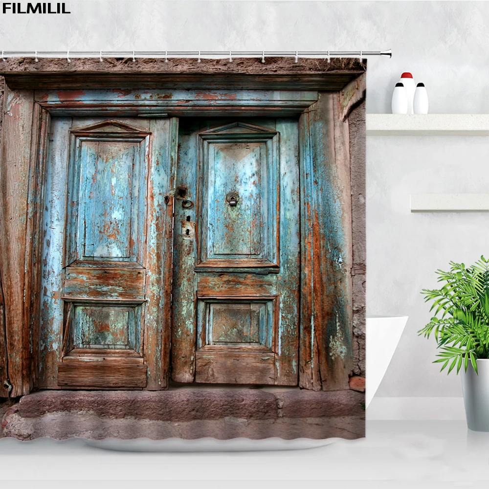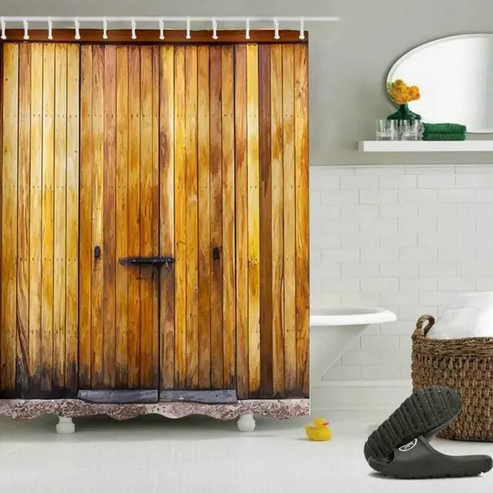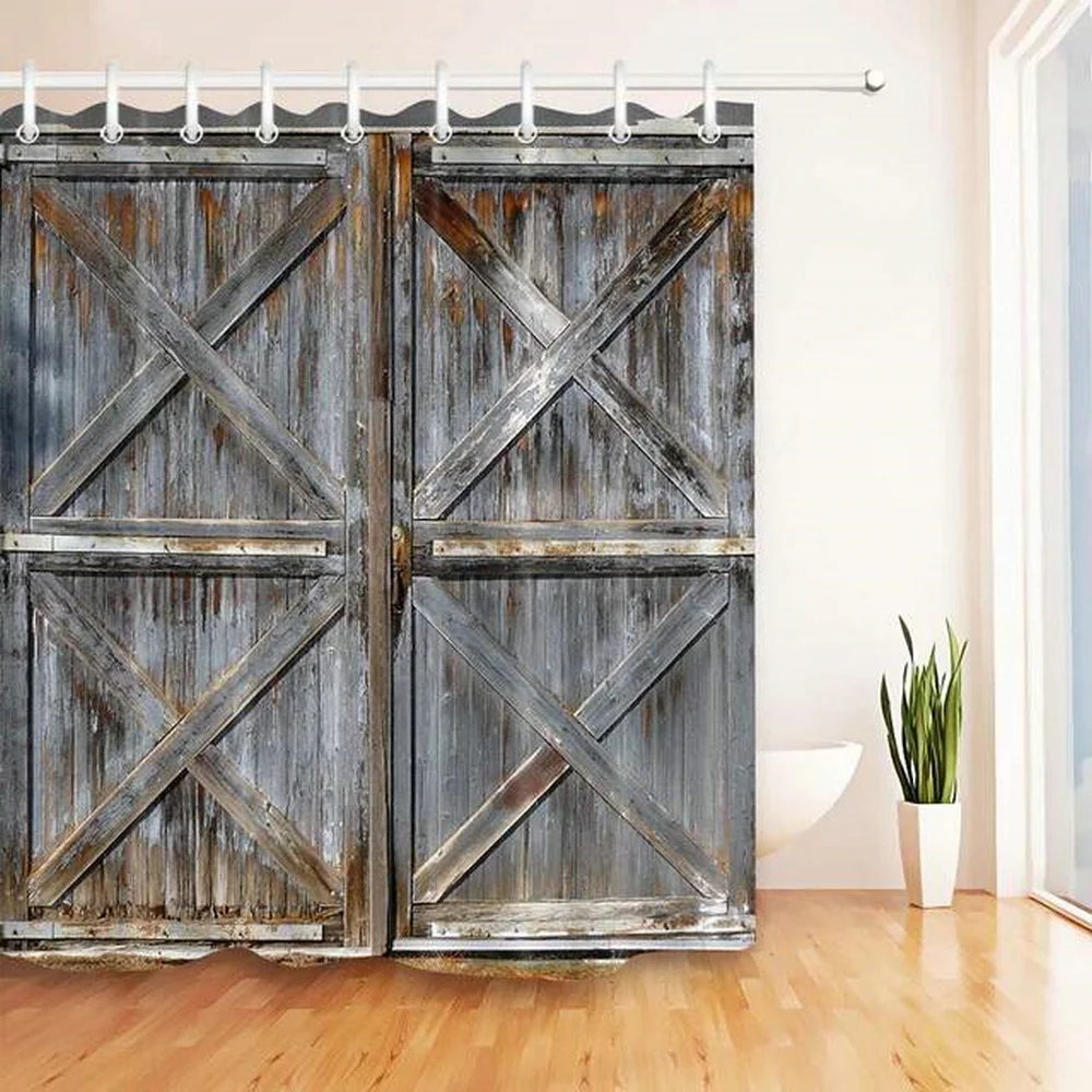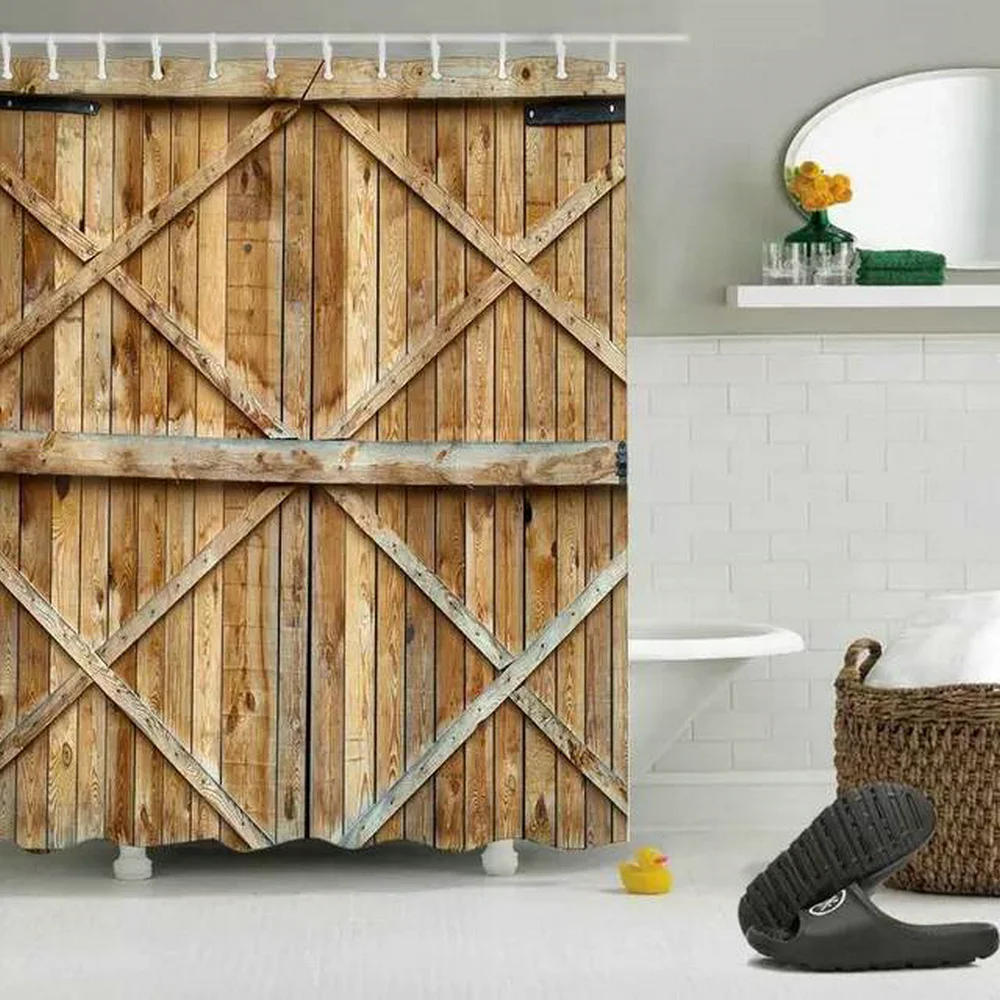 Ретро деревенская деревянная дверь, занавеска для душа, s винтажная ферма, сарай, качающиеся двери, отделка из полиэстера, шикарный комплект занавесок для ванной комнаты