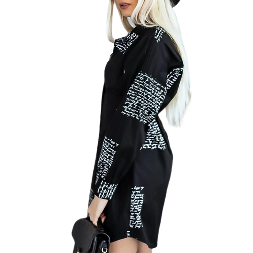 Женское платье-рубашка на пуговицах, Весенняя Повседневная Длинная блузка с буквенным принтом и V-образным вырезом