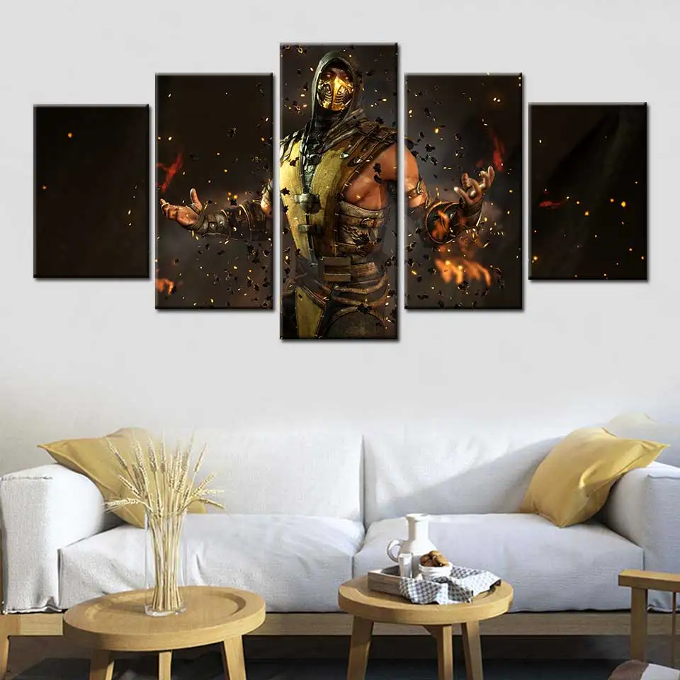 5 панелей Mortal Kombat X Скорпион персонаж холст картины Wall Art домашний декор Модульная картина плакаты и принты Гостиная