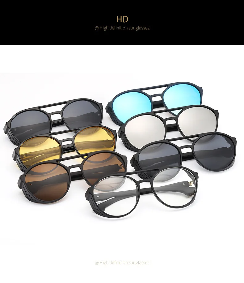 Солнцезащитные очки в стиле стимпанк для мужчин и женщин, винтажные модные солнечные аксессуары в круглой оправе, с откидной крышкой, в стиле ретро, для вождения, 2022