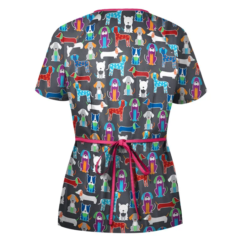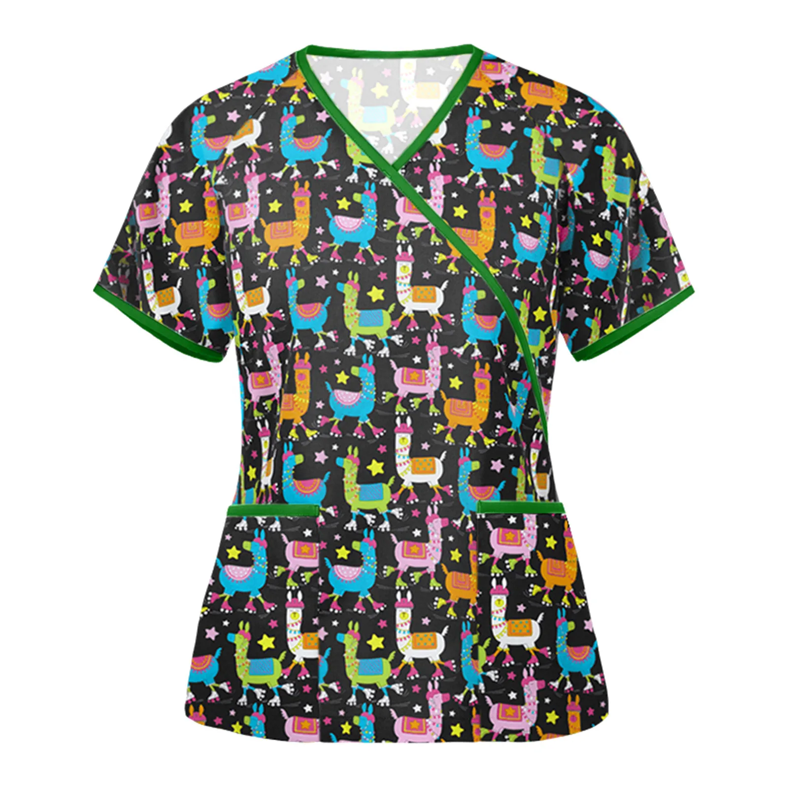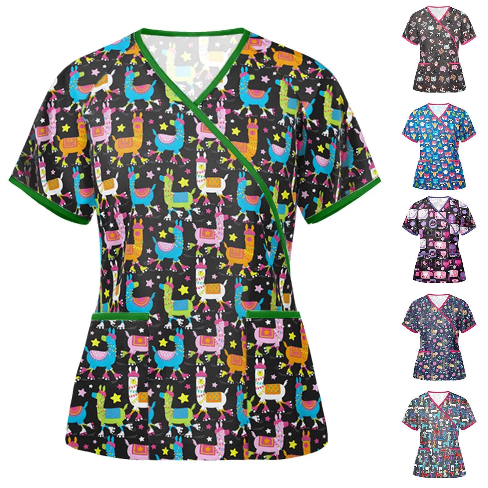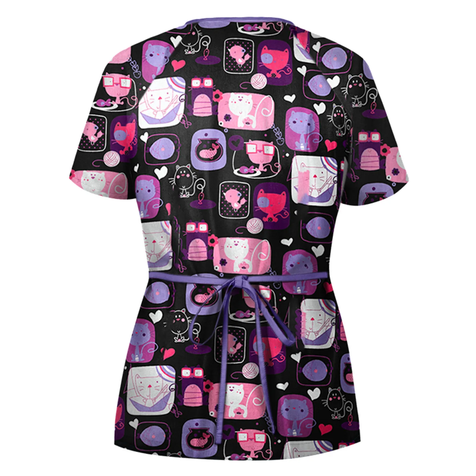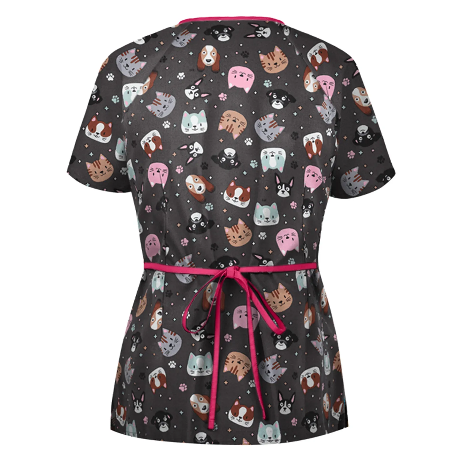 Униформа медицинская эластичная с мультяшным принтом, с коротким ру...