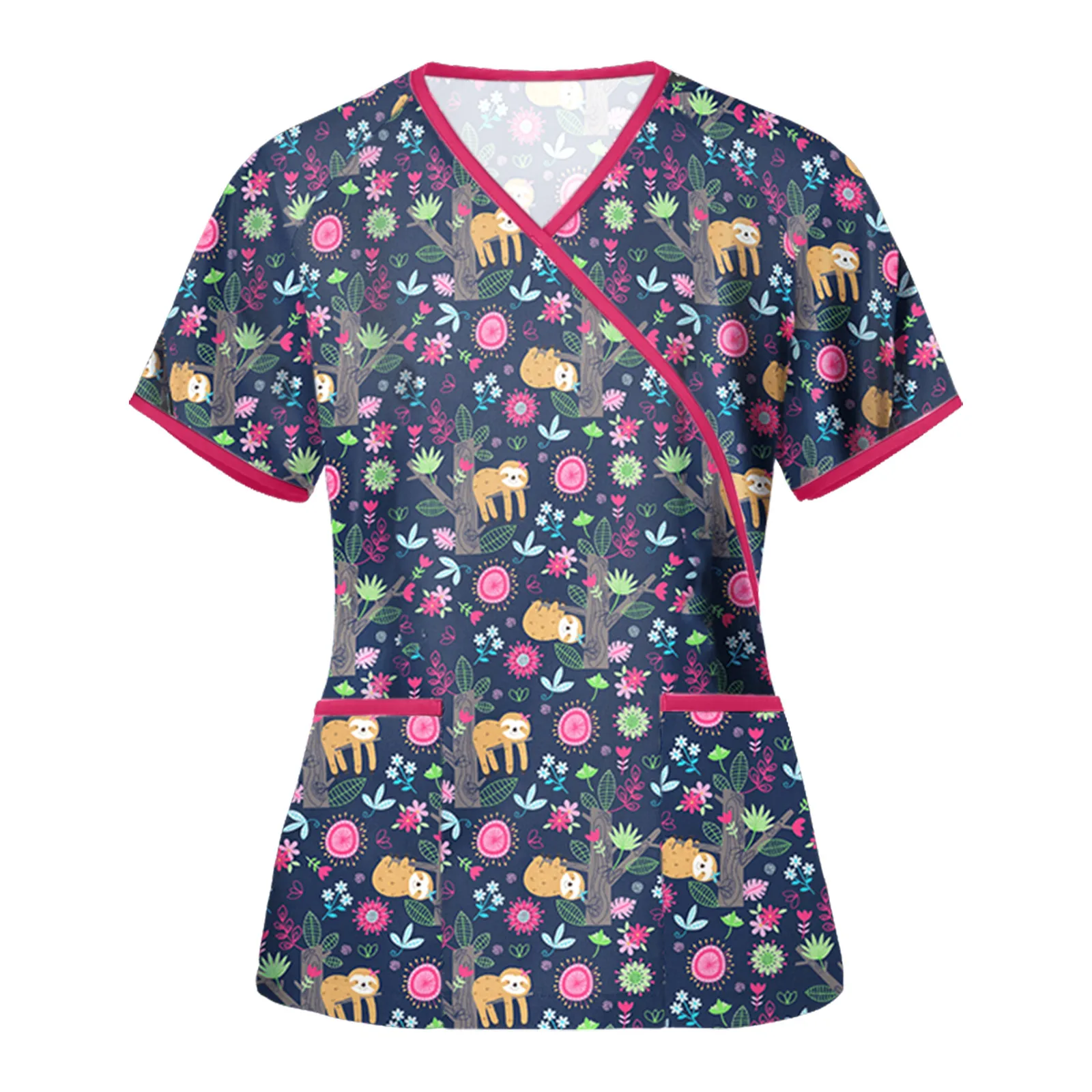 Летняя модная женская одежда больших размеров, медицинская Униформа без позиционирования, женская футболка с аниме принтом и коротким рукавом и асимметричным воротником