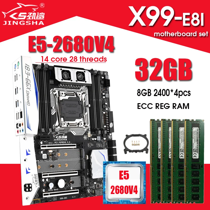 Комплект материнской платы JINGSHA X99 E8I с E5 2680V4 и 4*8 ГБ DDR4 2400 МГц ECC REG RAM NVME M.2 USB3.0 ATX SATA 3,0