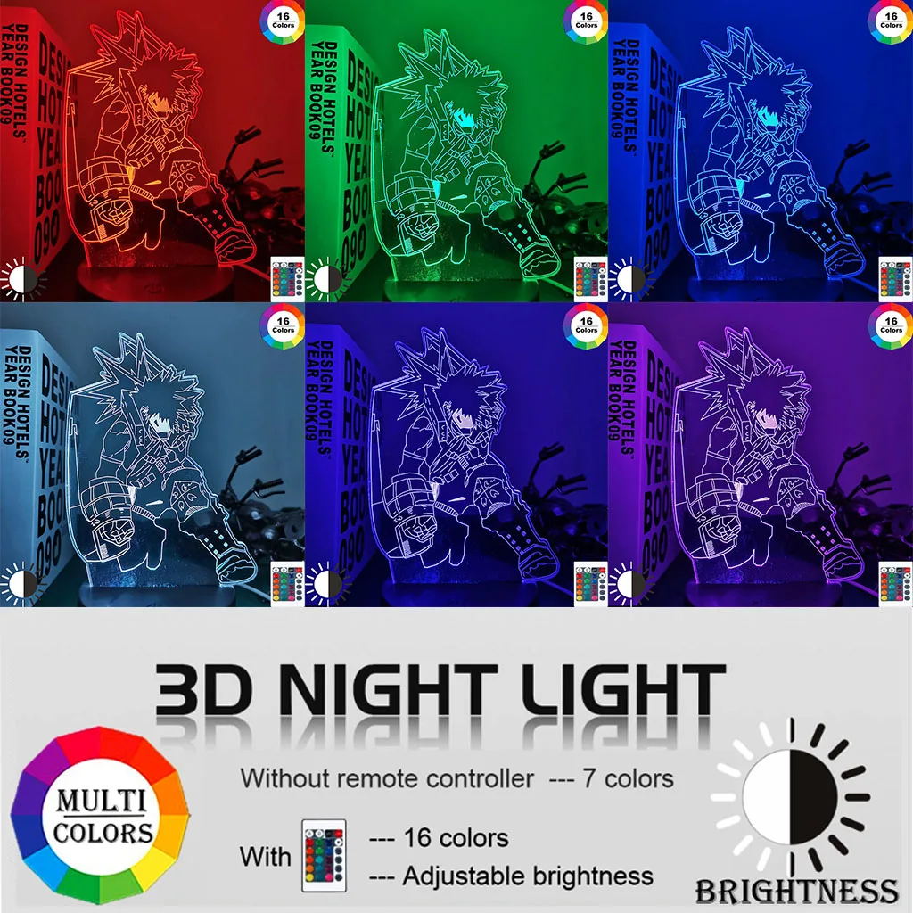 3d лампа аниме Моя геройская Академия кацуки бакуго лампа для спальни украшение подарок на день рождения Katsuki Bakugo светодиодный светильник
