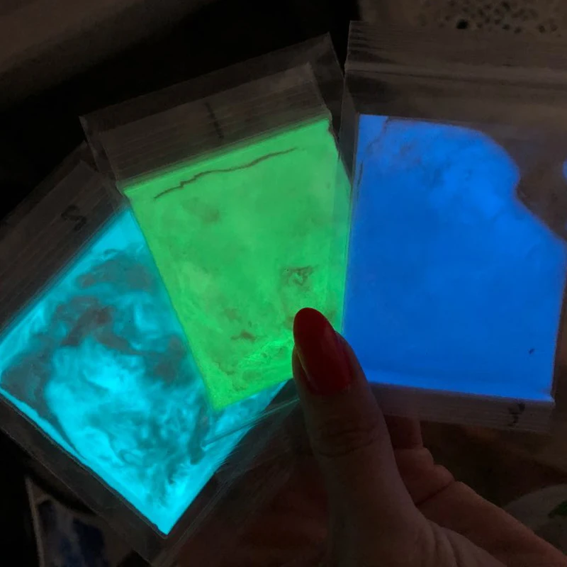 Светится в темноте порошковый Пигменткосметический пигмент, люминесцентный фосфорный порошок, 5 граммпакет