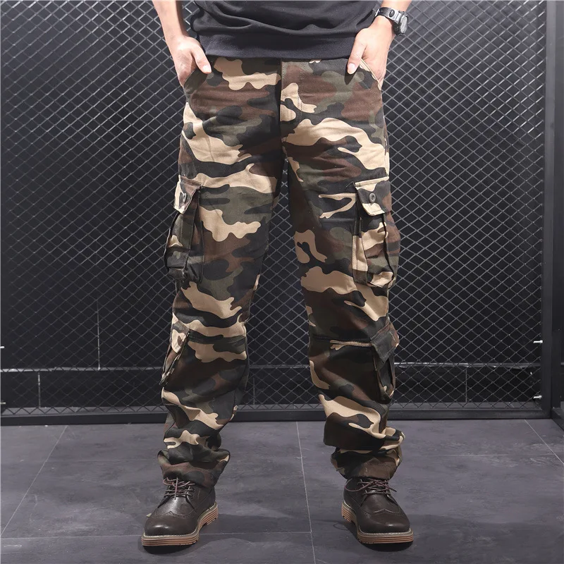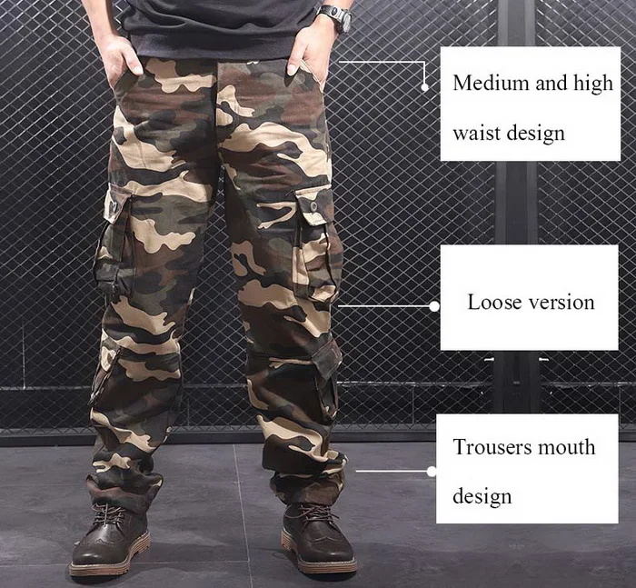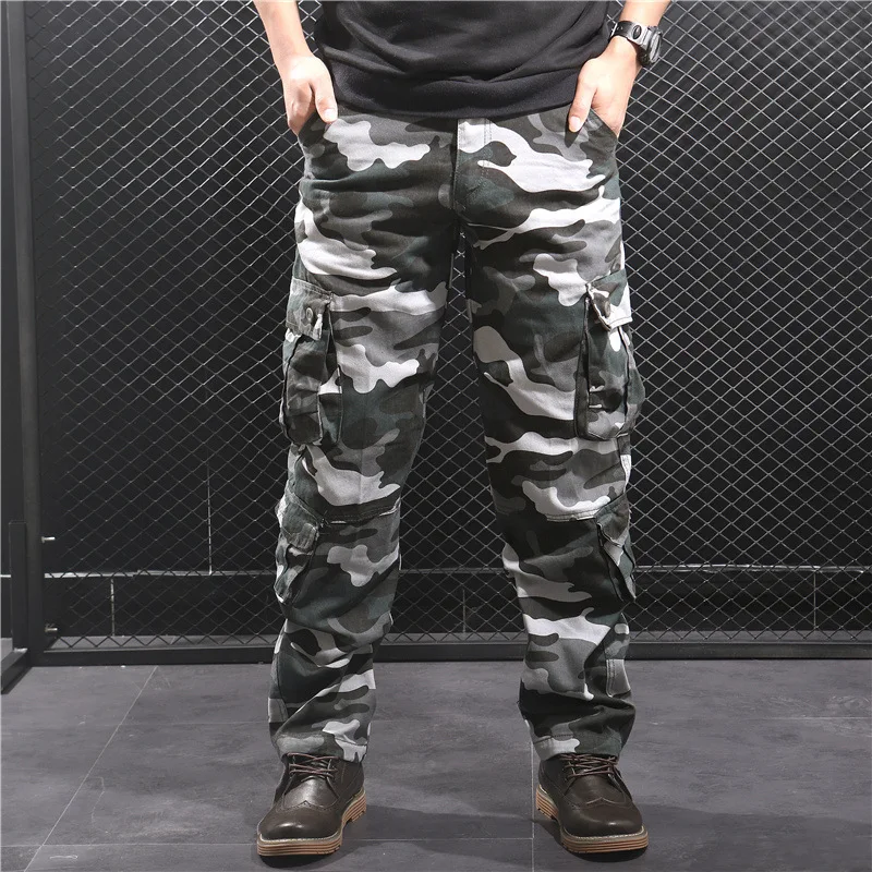 Брюки-карго мужские, с несколькими карманами, свободные, в стиле милитари