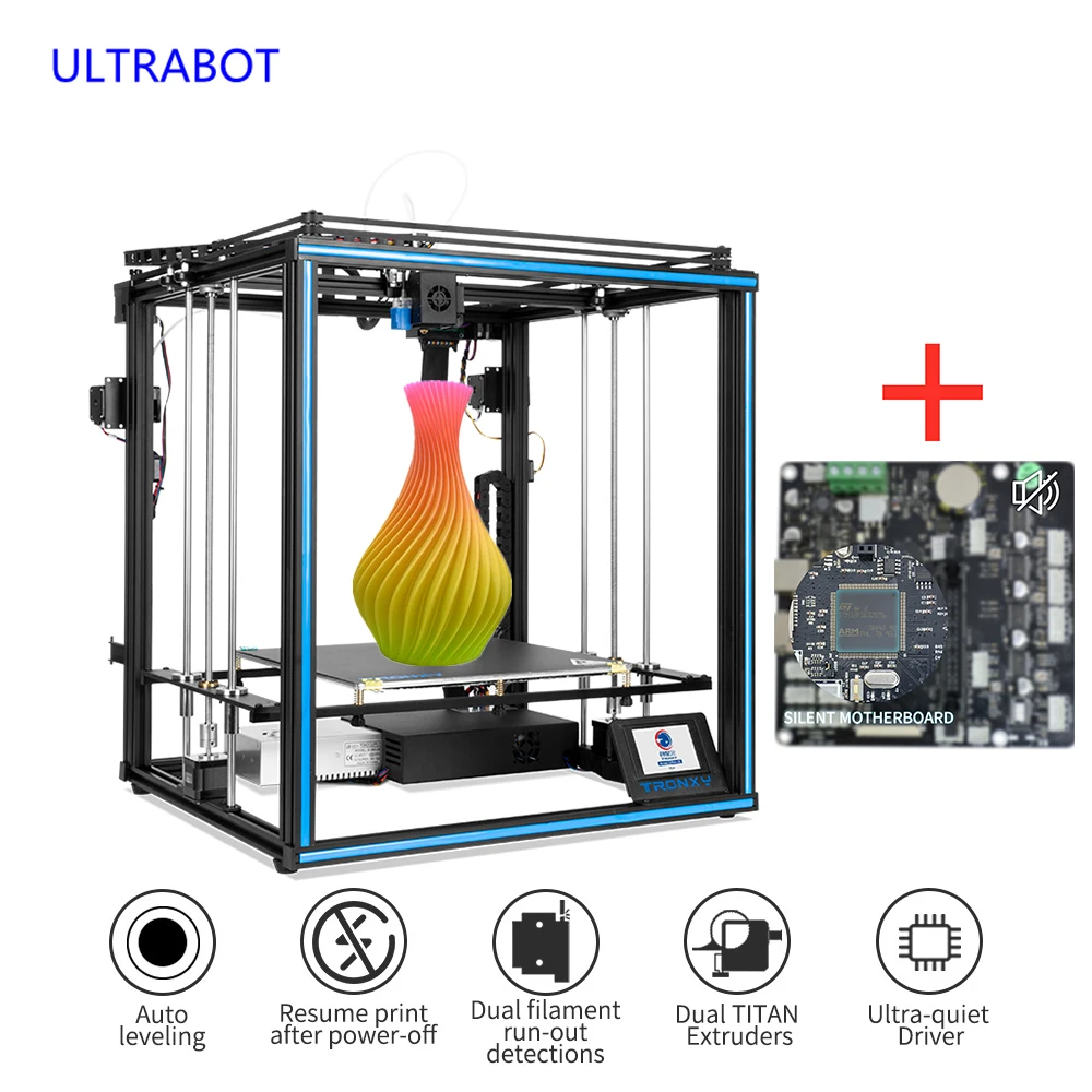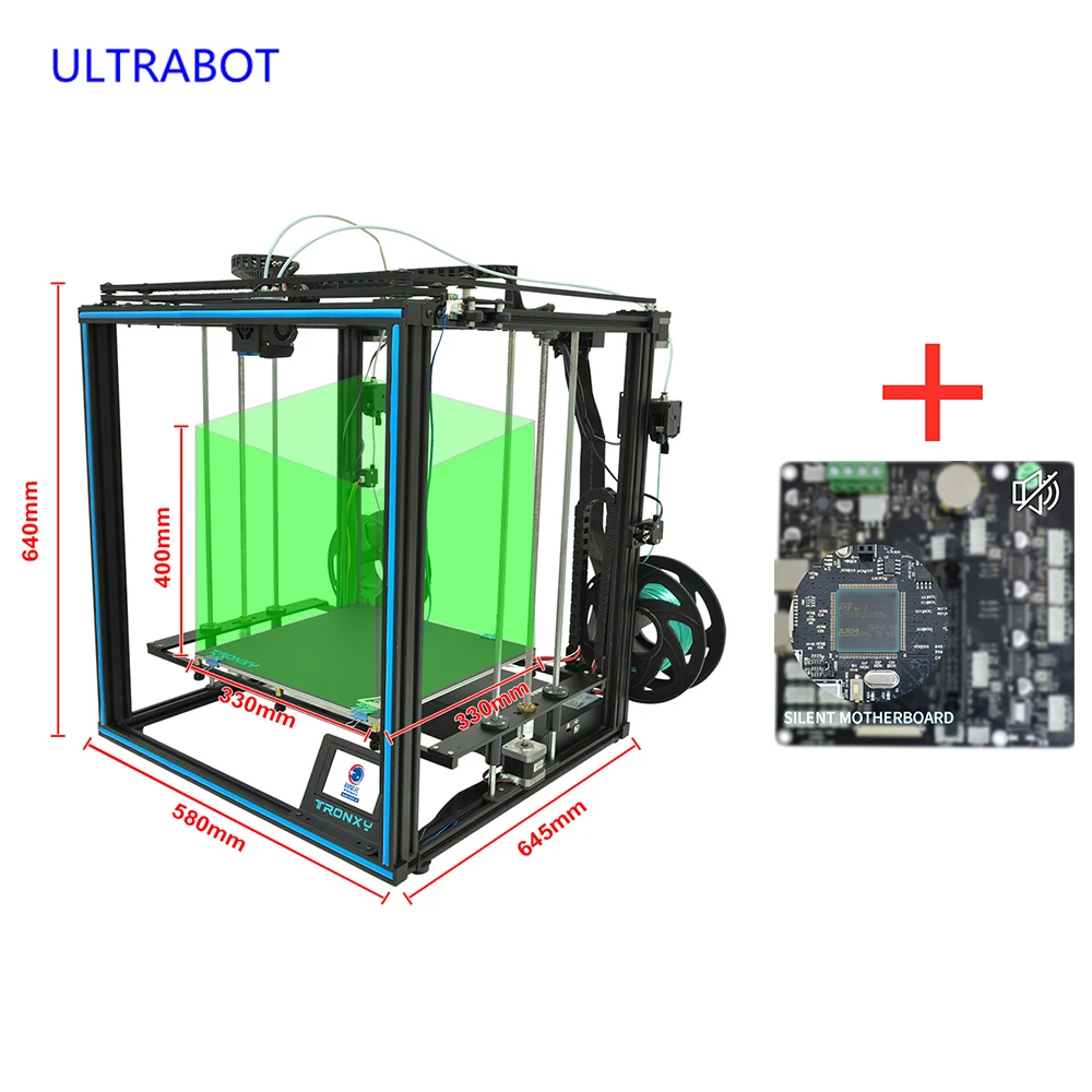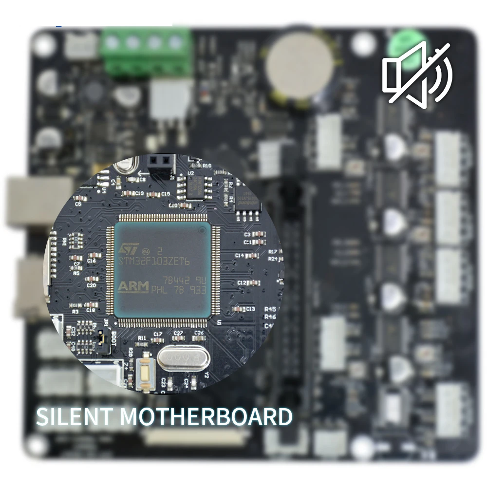 Материнская плата с низким уровнем шума установлена внутри этого 3D принтера