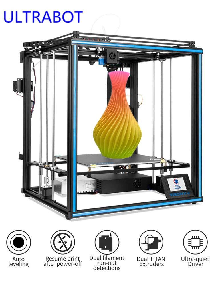 3D-принтер Tronxy X5SA 2E, устройство для самостоятельной сборки, с низким уровнем шума, с функцией возобновления печати после сбоя питания, сенсорный экран для материнской платы
