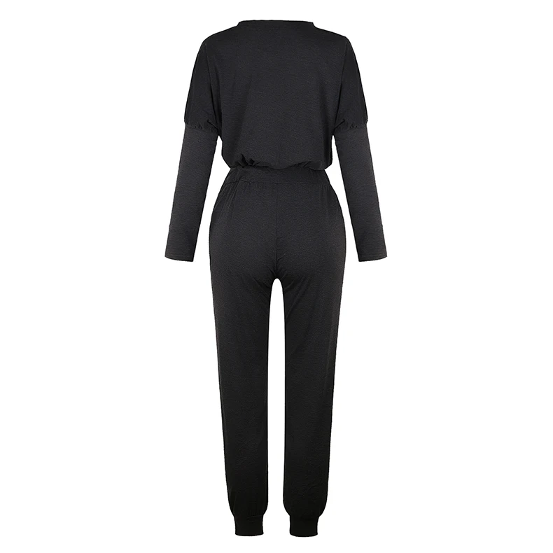 Женский Повседневный комплект из двух предметов, брюки и топ для отдыха с длинным рукавом, однотонный костюм для дома и улицы, костюм для бега, весна-осень