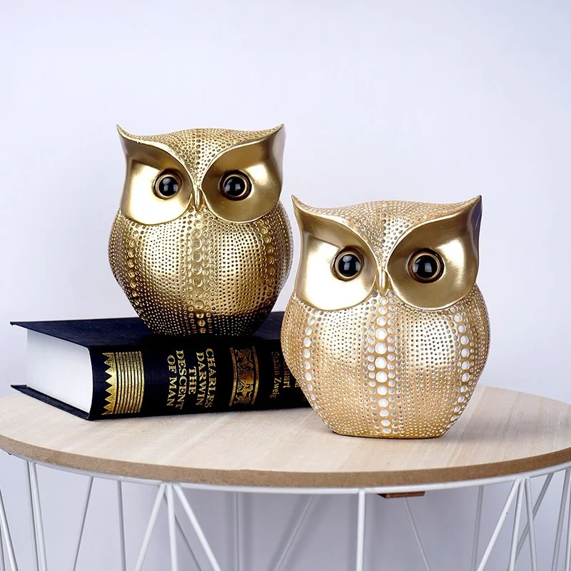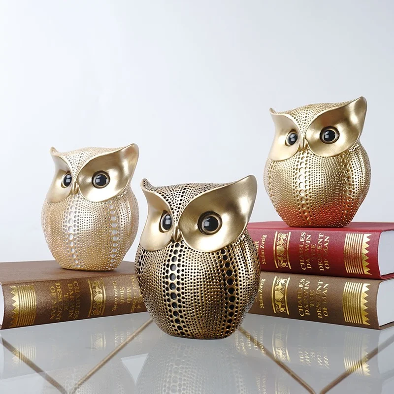 Статуи для украшения, сова, Золотая смола, декор для гостиной, скул...