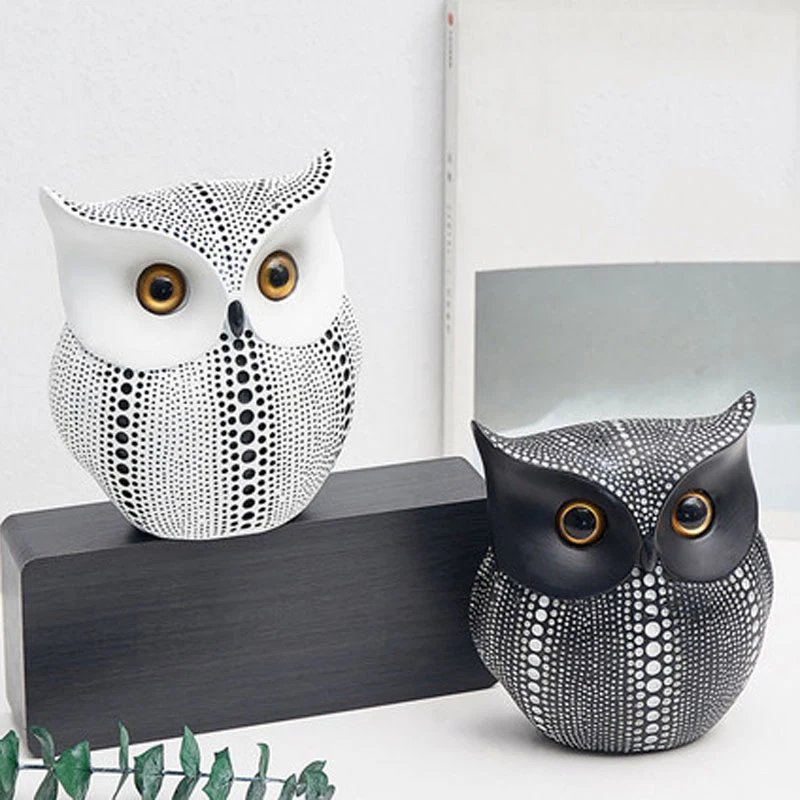 Совы ремесло Nordic Стиль в минималистском стиле белого и черного цвета с капюшоном с рисунком Совы фигурки полимерные миниатюры украшения дома Гостиная ремесла