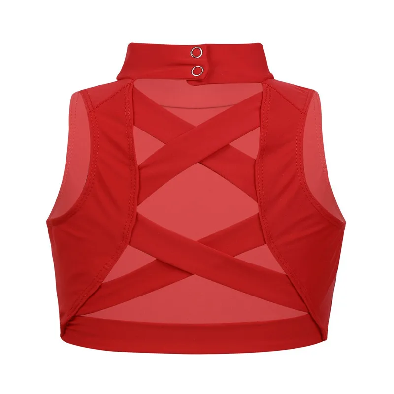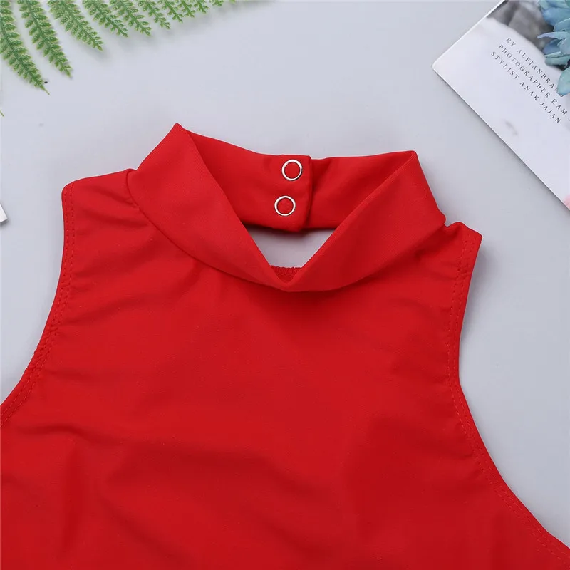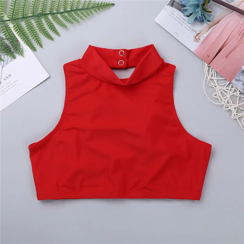 Кроп-топ для девочек, без рукавов, с ложным воротником