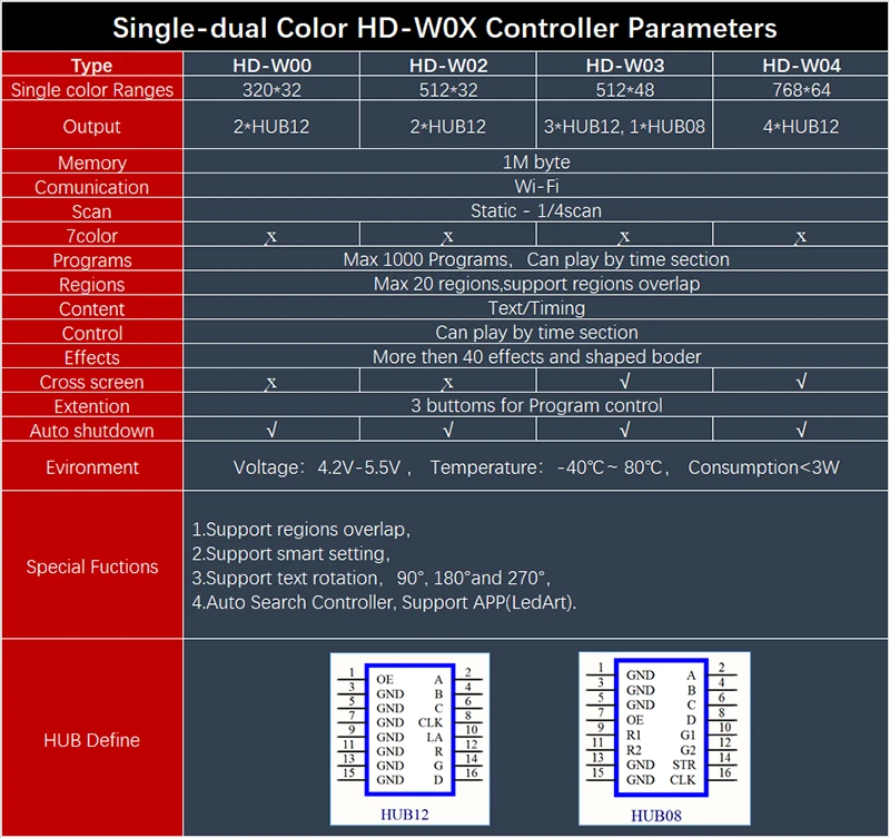 HD-W00/W02/W03/W04-это недорогой, экономичный Одноцветный контроллер Wi-Fi, прост в эксплуатации, лучше отображает информацию, поддерживает различные виды одноцветных дисплеев. Для дверного линейного экрана, экрана магазина и других мест отображения информации.