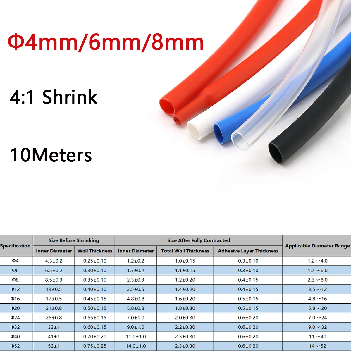 Термоусадочная трубка с двойными стенками 4:1, 10 метров, с клеем, герметичная и водонепроницаемая, 4 мм6 мм8 мм