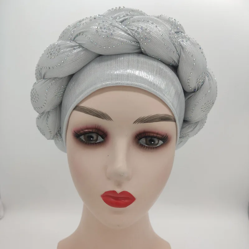2021 Африканский головной убор нигерийский светящийся головной убор геле Aso Oke Gele мусульманский уже изготовленный Auto Gele Hijab Aso Ebi тюрбан красочный головной убор