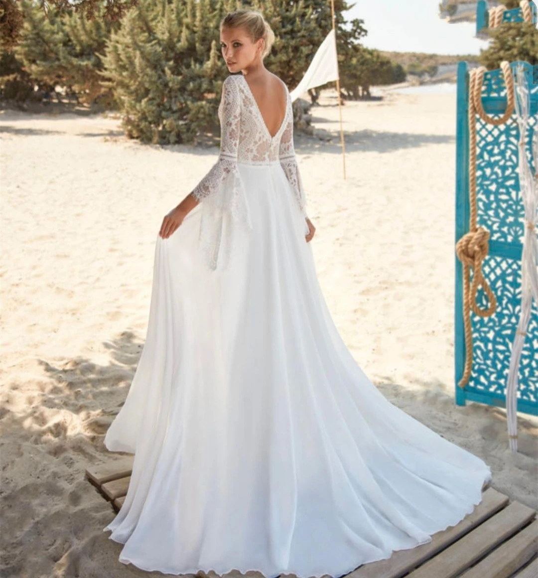 Богемные свадебные платья, кружевные шифоновые арабские Свадебные п...