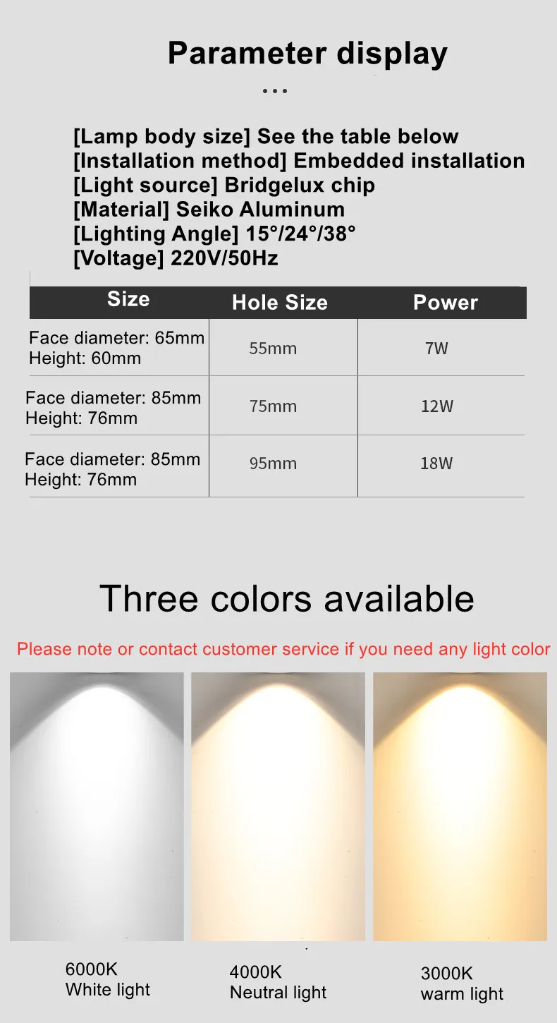 Точечный светильник, светодиодный потолочный светильник, встроенный глубокий антибликовый светильник, узкая рамка, COB, для дома, гостиной, без основного освещения, светильник, настенный светильник