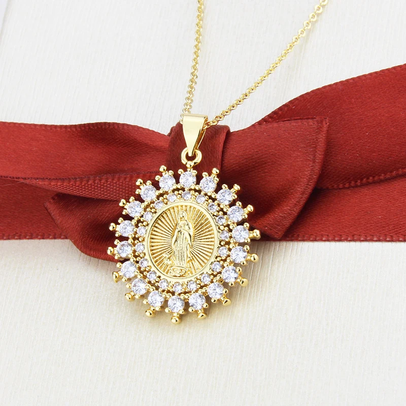 Святой Девы Марии кулон ожерелье камень циркон Девы Марии из ожерелье Гваделупа для женщин религиозные католические украшения подарок