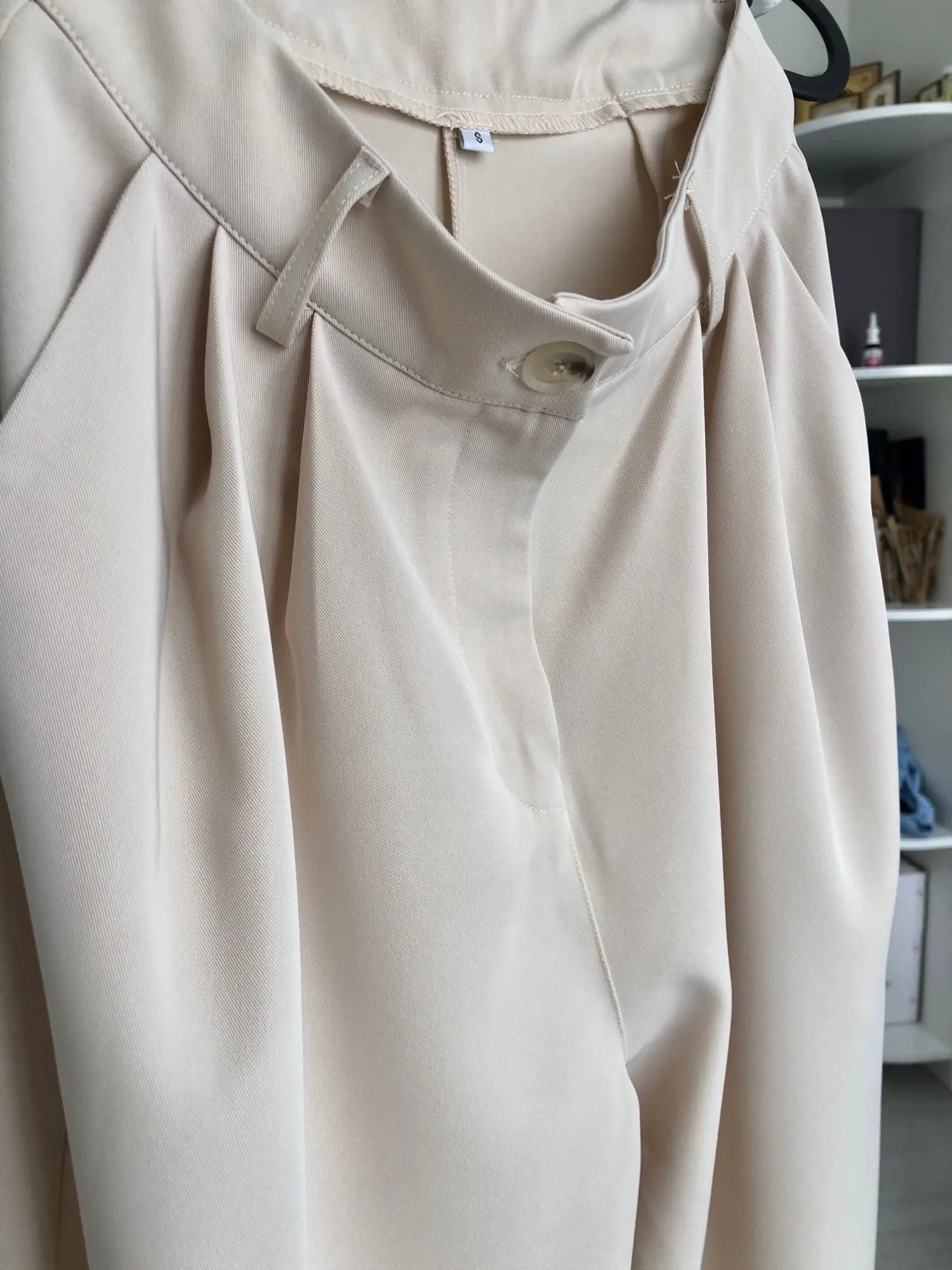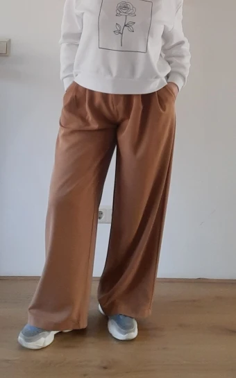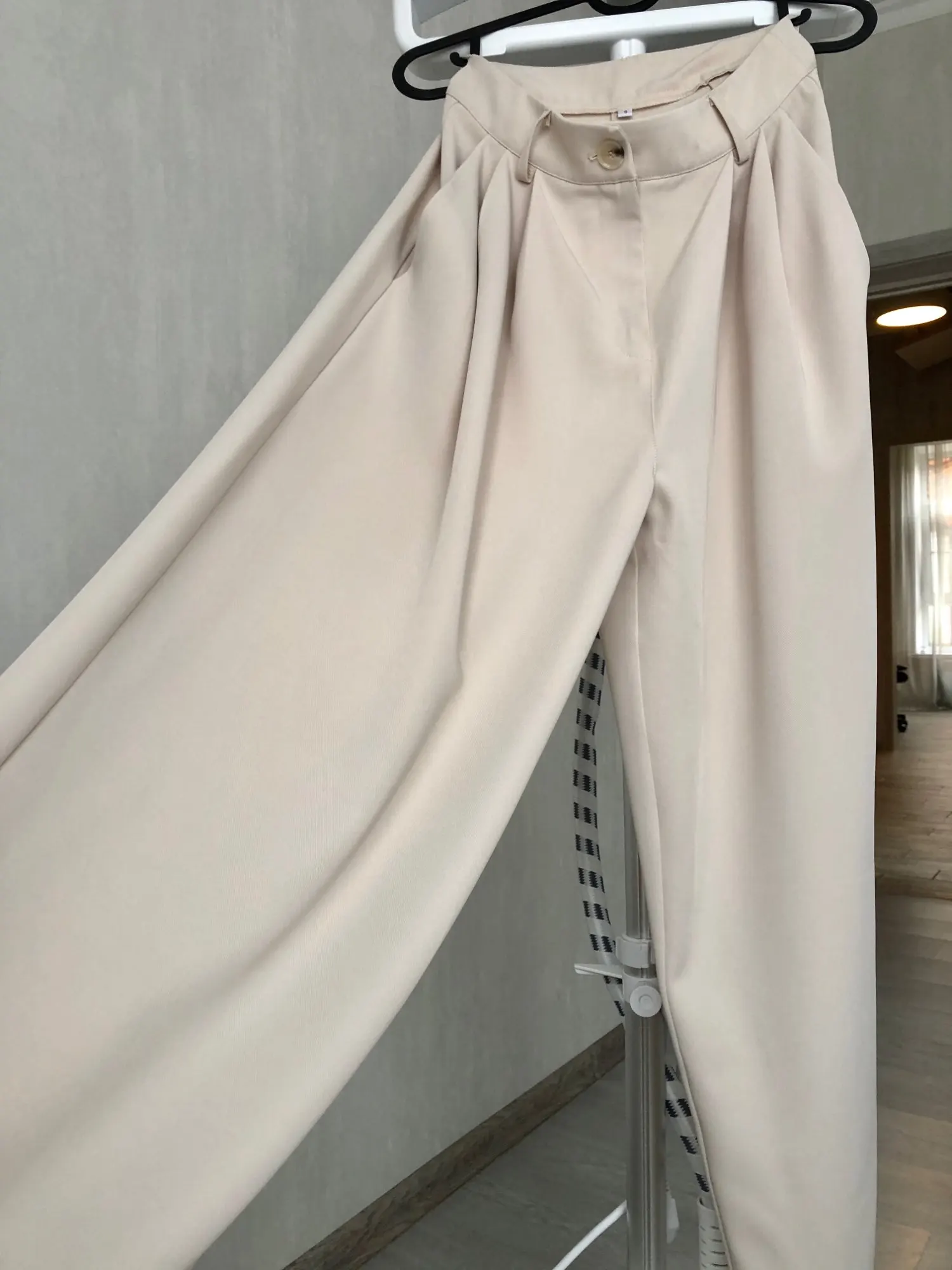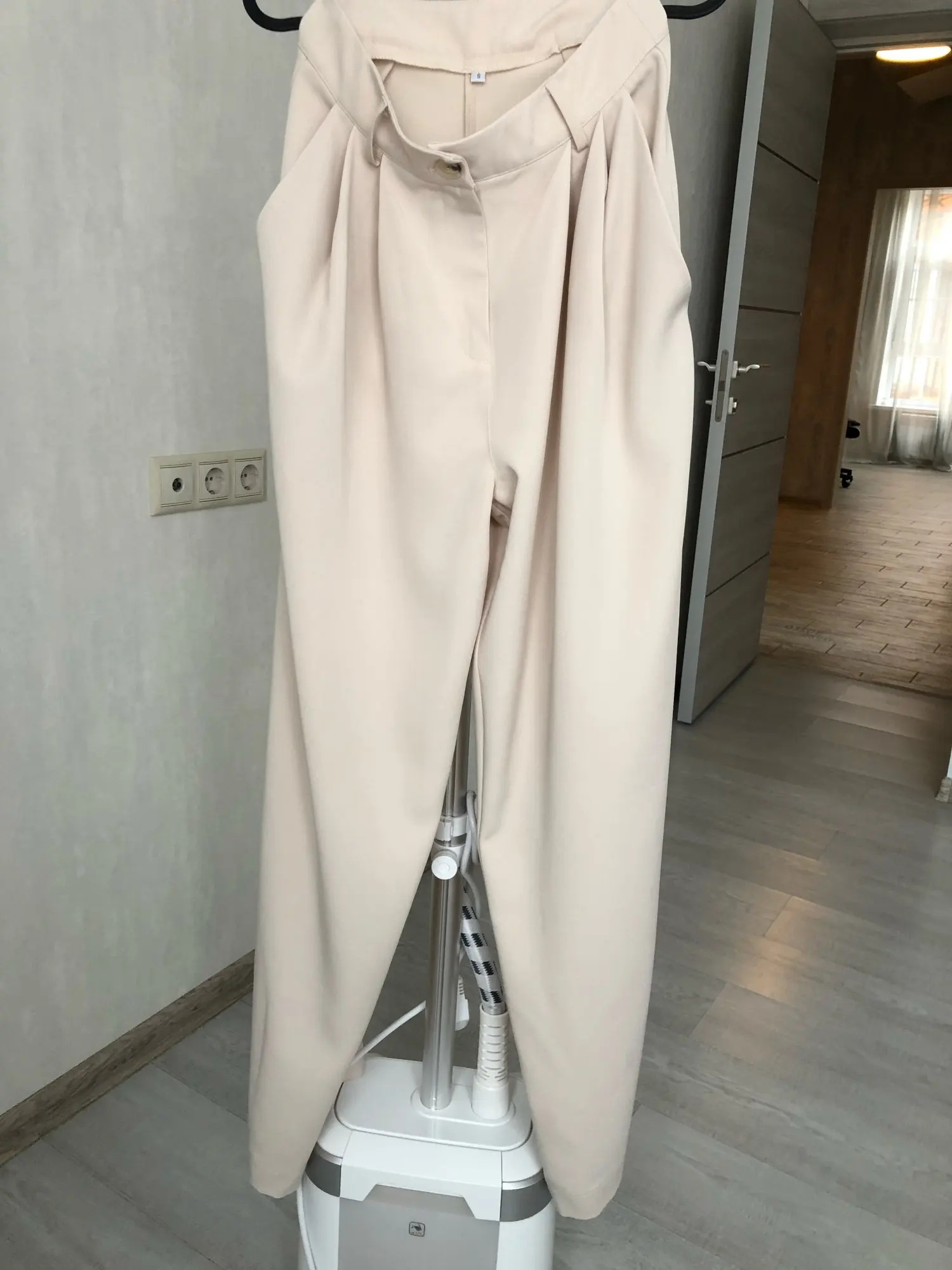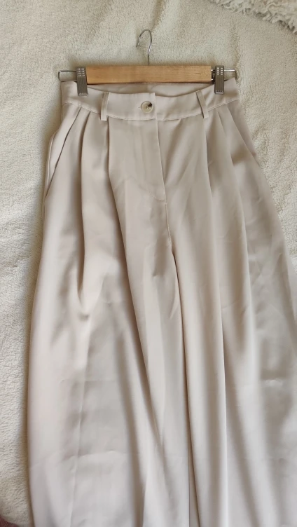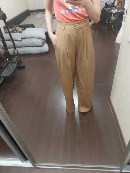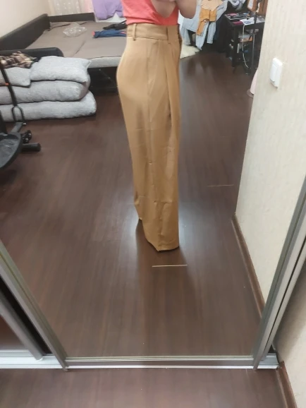Отличные брюки «палаццо», полностью соответствуют фотографиям продавца; на мой рост 158 см длинные; не маломерят: я в жизни ношу s-m, заказала s, немного свободные в талии, но не спадают; на попе есть выточки, красиво будут сидеть на девушках с высокой круглой попой) ткань синтетика, но без дешевого блескам и довольно тяжелая, вид у брюк не дешевый; пара ниточек, но не критично; цвет красивый: холодный светлый беж; мне понравились, спасибо)