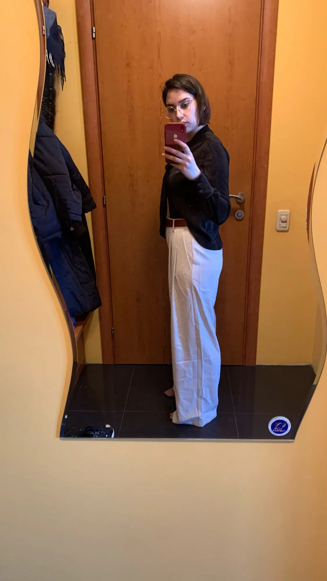 Брюки классные! Брала по размерной сетке - сели идеально. Ткань тяжелая, приятная, но немного просвечивается. Телесное белье спасёт ситуацию)