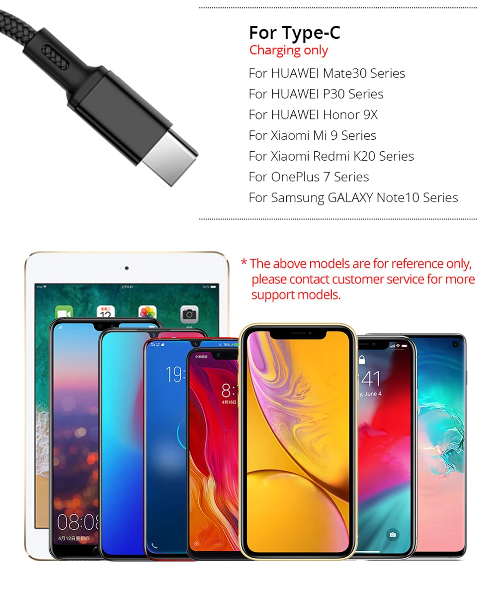 Function 3USB Cable Fast Charging For Huawei iPhone